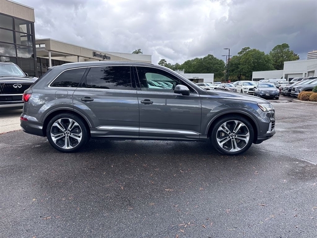 This 2021 Audi Q7 55 Prestige quattro in Gray Metallic comes with the following features: 3.0L TFSI V6 DOHC 8-Speed Automatic with Tiptronic quattro ***Manager Special - PRICE NOT A MISPRINT - THIS MONTH ONLY!!*, *Blind Spot Technology - Never Worry When Changing Lanes Again*, *Bluetooth Hands-Free Calling*, *Heated Front Leather Seats*, *Keyless Entry*, *Panoramic Moonroof*, *Push Button Start*, and *We Deliver Anywhere* Contour/Ambient LED Interior Lighting Package, Executive Package, Prestige Package (Comfort Adaptive Air Suspension, Dual-Pane Acoustic Side Windows, Head-Up Display, Intersection Assist, Matrix-Design LED Headlights, Power Soft-Closing Doors, and Traffic Sign Recognition), Towing Package (Tow Hitch Receiver), 10 Speakers, 3rd row seats: bench, Air Conditioning, Alloy wheels, AM/FM radio: SiriusXM, Audi smartphone interface (Apple CarPlay/Android Auto), Auto High-beam Headlights, Auto-dimming Rear-View mirror, Automatic temperature control, Compass, Delay-off headlights, Driver vanity mirror, Dual front impact airbags, Dual front side impact airbags, Emergency communication system: Audi connect CARE, PRIME & PLUS, Exterior Parking Camera Rear, Front dual zone A/C, Front fog lights, Front reading lights, Fully automatic headlights, Garage door transmitter: HomeLink, Heated door mirrors, Heated Front Bucket Seats, Heated front seats, Illuminated entry, Low tire pressure warning, Memory seat, Navigation system: Audi MMI Navigation plus with Touch Response, Occupant sensing airbag, Outside temperature display, Overhead airbag, Overhead console, Panic alarm, Passenger vanity mirror, Power driver seat, Power Liftgate, Power moonroof, Power passenger seat, Radio: Audi Sound System, Rain sensing wipers, Rear air conditioning, Rear fog lights, Rear window wiper, Remote keyless entry, Security system, Speed control, Speed-sensing steering, Steering wheel memory, Steering wheel mounted audio controls, Tachometer, Telescoping steering wheel, Tilt steering wheel, Trip computer, Turn signal indicator mirrors, and Variably intermittent w