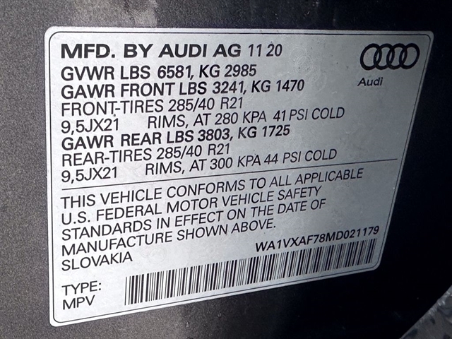 ***Manager Special - PRICE NOT A MISPRINT - THIS MONTH ONLY!!*, *Blind Spot Technology - Never Worry When Changing Lanes Again*, *Bluetooth Hands-Free Calling*, *Heated Front Leather Seats*, *Keyless Entry*, *Panoramic Moonroof*, *Push Button Start*, *We Deliver Anywhere*, 10 Speakers, 3rd row seats: bench, Air Conditioning, Alloy wheels, AM/FM radio: SiriusXM, Audi smartphone interface (Apple CarPlay/Android Auto), Auto High-beam Headlights, Auto-dimming Rear-View mirror, Automatic temperature control, Comfort Adaptive Air Suspension, Compass, Contour/Ambient LED Interior Lighting Package, Delay-off headlights, Driver vanity mirror, Dual front impact airbags, Dual front side impact airbags, Dual-Pane Acoustic Side Windows, Emergency communication system: Audi connect CARE, PRIME & PLUS, Executive Package, Exterior Parking Camera Rear, Front dual zone A/C, Front fog lights, Front reading lights, Fully automatic headlights, Garage door transmitter: HomeLink, Head-Up Display, Heated door mirrors, Heated Front Bucket Seats, Heated front seats, Illuminated entry, Intersection Assist, Low tire pressure warning, Matrix-Design LED Headlights, Memory seat, Navigation system: Audi MMI Navigation plus with Touch Response, Occupant sensing airbag, Outside temperature display, Overhead airbag, Overhead console, Panic alarm, Passenger vanity mirror, Power driver seat, Power Liftgate, Power moonroof, Power passenger seat, Power Soft-Closing Doors, Prestige Package, Radio: Audi Sound System, Rain sensing wipers, Rear air conditioning, Rear fog lights, Rear window wiper, Remote keyless entry, Security system, Speed control, Speed-sensing steering, Steering wheel memory, Steering wheel mounted audio controls, Tachometer, Telescoping steering wheel, Tilt steering wheel, Tow Hitch Receiver, Towing Package, Traffic Sign Recognition, Trip computer, Turn signal indicator mirrors, Variably intermittent wipers.