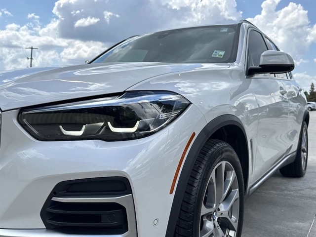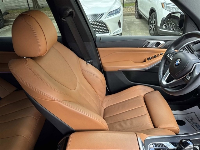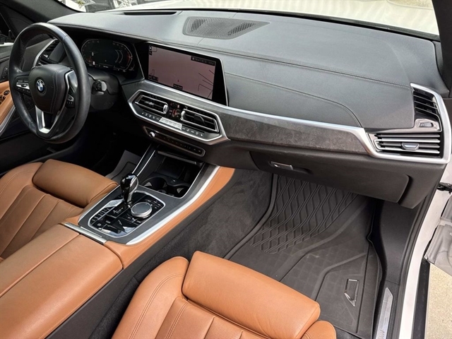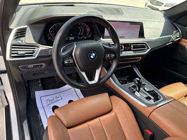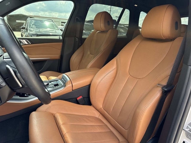 This 2022 BMW X5 sDrive40i in Mineral White Metallic comes with the following features: 3.0L I6 DOHC 24V TwinPower Turbo 8-Speed Automatic Sport RWD Cognac Leather Connected Package Pro, Parking Assistance Package (Active Park Distance Control, Drive Recorder, Parking Assistant Plus, Rear-View Camera, and Surround View w/3D View), Premium Package (Gesture Control, Head-Up Display, and Remote Engine Start), Cognac Leather, 10 Speakers, 4-Wheel Disc Brakes, 4-Zone Automatic Climate Control, ABS brakes, Air Conditioning, Alloy wheels, AM/FM radio: SiriusXM with 360L, AM/FM Stereo, Auto High-beam Headlights, Auto tilt-away steering wheel, Auto-dimming door mirrors, Auto-dimming Rear-View mirror, Automatic temperature control, Axle Ratio: TBD, BMW Assist eCall, BMW TeleServices, Brake assist, Bumpers: body-color, Compass, ConnectedDrive Services, Delay-off headlights, Driver door bin, Driver vanity mirror, Dual front impact airbags, Dual front side impact airbags, Electronic Stability Control, Emergency communication system: BMW Assist eCall, Enhanced Bluetooth, Exterior Parking Camera Rear, Four wheel independent suspension, Front anti-roll bar, Front Bucket Seats, Front Center Armrest, Front dual zone A/C, Front reading lights, Fully automatic headlights, Garage door transmitter, Genuine wood console insert, Genuine wood dashboard insert, Genuine wood door panel insert, Head restraints memory, Heated door mirrors, Heated Front Seats, Heated front seats, Hi-Fi Sound System, Illuminated entry, Knee airbag, Leather Shift Knob, Leather steering wheel, Live Cockpit Pro w/Navigation, Low tire pressure warning, Lumbar Support, Memory seat, Navigation System, Occupant sensing airbag, Outside temperature display, Overhead airbag, Panic alarm, Passenger door bin, Passenger vanity mirror, Power adjustable front head restraints, Power door mirrors, Power driver seat, Power Front Seats, Power moonroof, Power passenger seat, Power steering, Power windows, Radio data system, Rain sensing wipers, Rear anti-roll bar, Rear reading lights, Rear seat center armrest, Rear window defroster, Rear window wiper, Remote keyless entry, Roof rack: rails only, Security system, SensaTec Upholstery, SiriusXM Satellite Radio w/360L, Speed control, Speed-sensing steering, Speed-Sensitive Wipers, Split folding rear seat, Spoiler, Sport Seats, Sport steering wheel, Steering wheel memory, Steering wheel mounted audio controls, Tachometer, Telescoping steering wheel, Tilt steering wheel, Traction control, Trip computer, Turn signal indicator mirrors, Variably intermittent wipers, Wheels: 19`` x 9`` V-Spoke, and Wheels: 20`` x 9`` V-Spoke.