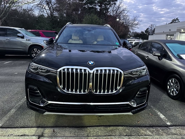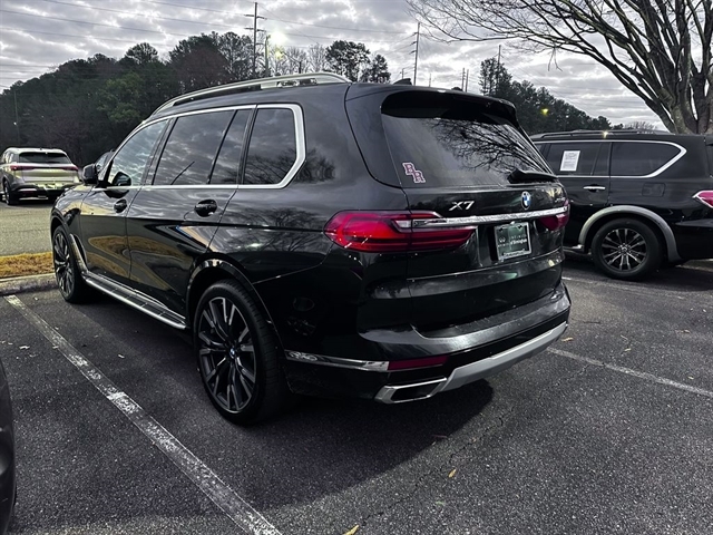 This 2022 BMW X7 xDrive40i in Black Sapphire Metallic comes with the following features: 3.0L I6 DOHC 24V 8-Speed Automatic Sport AWD Cold Weather Package (5-Zone Automatic Climate Control and Front & Rear Heated Seats), Connected Package Pro, Driving Assistance Professional Package (Active Driving Assistant Pro and Extended Traffic Jam Assistant), Parking Assistance Package (Drive Recorder, Parking Assistant Plus, Rear-View Camera, and Surround View w/3D View), Premium Package (Gesture Control, Head-Up Display, Rear Electric Side Window Shades, and Soft-Close Automatic Doors), 10 Speakers, 2nd Row Captain`s Chairs, 3.64 Axle Ratio, 3rd row seats: split-bench, 4-Wheel Disc Brakes, ABS brakes, Air Conditioning, Alloy wheels, Aluminum Running Boards, AM/FM radio: SiriusXM with 360L, AM/FM Stereo, Anthracite Alcantara Headliner, Apple CarPlay & Android Auto Compatibility, Apple CarPlay Compatibility, Auto High-beam Headlights, Auto tilt-away steering wheel, Auto-dimming door mirrors, Auto-dimming Rear-View mirror, Auto-leveling suspension, Automatic temperature control, BMW Assist eCall, BMW TeleServices, Brake assist, Bumpers: body-color, Compass, ConnectedDrive Services, Delay-off headlights, Driver door bin, Driver vanity mirror, Dual front impact airbags, Dual front side impact airbags, Electronic Stability Control, Emergency communication system: BMW Assist eCall, Exterior Parking Camera Rear, Four wheel independent suspension, Front anti-roll bar, Front Bucket Seats, Front Center Armrest, Front dual zone A/C, Front fog lights, Front reading lights, Fully automatic headlights, Garage door transmitter, Genuine wood console insert, Genuine wood dashboard insert, Genuine wood door panel insert, Head restraints memory, Heated door mirrors, Heated front seats, Heated Sport Seats, Heated steering wheel, Hi-Fi Sound System, Illuminated entry, Knee airbag, Leather Shift Knob, Live Cockpit Pro w/Navi, Low tire pressure warning, Lumbar Support, Memory seat, Navigation System, Occupant sensing airbag, Outside temperature display, Overhead airbag, Panic alarm, Passenger door bin, Passenger vanity mirror, Power adjustable front head restraints, Power door mirrors, Power driver seat, Power Front Seats, Power moonroof: Panorama, Power passenger seat, Power steering, Power windows, Radio data system, Rain sensing wipers, Rear air conditioning, Rear anti-roll bar, Rear dual zone A/C, Rear reading lights, Rear seat center armrest, Rear window defroster, Rear window wiper, Reclining 3rd row seat, Remote keyless entry, Roof rack: rails only, Security system, SensaTec Upholstery, SiriusXM w/360L, Speed control, Speed-sensing steering, Speed-Sensitive Wipers, Split folding rear seat, Spoiler, Sport steering wheel, Steering wheel memory, Steering wheel mounted audio controls, Tachometer, Telescoping steering wheel, Tilt steering wheel, Traction control, Trip computer, Turn signal indicator mirrors, Variably intermittent wipers, Wheels: 21`` x 9.5`` Y-Spoke Bi-Color, Wheels: 22`` x 9.5`` Fr & 22`` x 10.5`` Rr V-Spoke, WiFi Hotspot, and Wireless Charging.