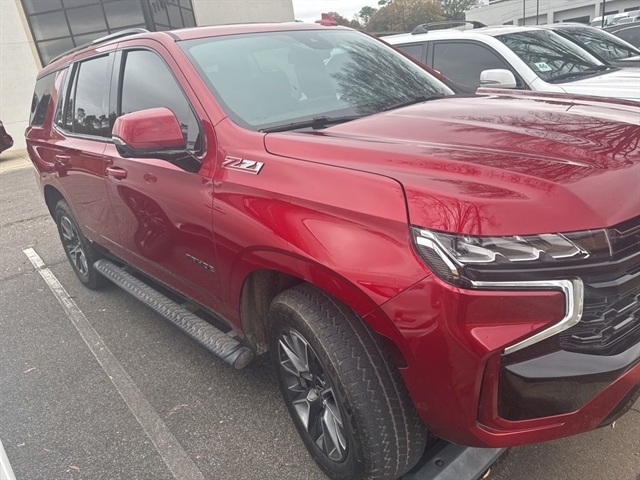 This 2023 Chevrolet Tahoe Z71 in Radiant Red Tintcoat comes with the following features: EcoTec3 6.2L V8 10-Speed Automatic with Overdrive 4WD 4WD and Black Leather Advanced Trailering Package (Hitch Guidance w/Hitch View, Integrated Trailer Brake Controller, and Smart Trailer Integration Indicator), Driver Alert Package (Lane Change Alert w/Side Blind Zone Alert and Rear Cross Traffic Alert), Luxury Package (2nd Row Pwr Release 60/40 Split-Folding Bench Seat, 3rd Row 60/40 Power-Folding Split-Bench Seat, HD Surround Vision, Heated 2nd Row Outboard Seats, Heated Steering Wheel, Memory Settings, Outside Heated Power-Adjustable Mirrors, Power Tilt & Telescopic Steering Column, and Rear Pedestrian Alert), Max Trailering Package (Extra Capacity Cooling System), Off-Road Capability Package (Air Ride Adaptive Suspension, Electronic Limited-Slip Differential, and Magnetic Ride Control Suspension), Off-Road Performance Package (Dual Exhaust System), Preferred Equipment Group 2Z7 (1st & 2nd Row Color-Keyed Carpeted Floor Mats, 2-Speed Active Electronic AutoTrac Transfer Case, Auto-Dimming Inside Rear-View Mirror, Black Tubular Assist Steps, Bose 9-Speaker Stereo Audio System Feature, Bright Front & Rear Door Sill Plates, Color-Keyed Carpeting Floor Covering, Driver & Front Outboard Passenger Airbags, Enhanced Driver Information Center, Floor Console w/Storage Area, Front High-Approach Angle Fascia, Hands-Free Rear Power Programmable Liftgate, Hill Descent Control, Infotainment Display, LED Daytime Running Lamps, Memory Settings for Driver, Red Horizontal-Mounted Recovery Hooks, Remote Start, SiriusXM Radio w/360L, Universal Home Remote, Wireless Charging, and Wrapped Steering Wheel), 4WD, Black Leather, 10-Way Power Driver & Passenger Seat Adjusters, 3.23 Rear Axle Ratio, 3rd row seats: split-bench, 4-Wheel Disc Brakes, 9 Speakers, ABS brakes, Air Conditioning, Alloy wheels, AM/FM radio: SiriusXM with 360L, Apple CarPlay/Android Auto, Auto High-beam Headlights, Auto-dimming Rear-View mirror, Automatic temperature control, Brake assist, Bumpers: body-color, Compass, Delay-off headlights, Driver door bin, Driver vanity mirror, Dual front impact airbags, Dual front side impact airbags, Dual-Pane Power Panoramic Sunroof, Electronic Stability Control, Emergency communication system: OnStar and Chevrolet connected services capable, Four wheel independent suspension, Front anti-roll bar, Front Bucket Seats, Front Center Armrest, Front dual zone A/C, Front High-Back Reclining Bucket Seats, Front reading lights, Fully automatic headlights, Garage door transmitter, Heated door mirrors, Heated Driver & Front Passenger Seats, Heated front seats, Illuminated entry, Leather-Appointed Seat Trim, Low tire pressure warning, Memory seat, Navigation System, Occupant sensing airbag, Outside temperature display, Overhead airbag, Overhead console, Panic alarm, Passenger door bin, Passenger vanity mirror, Power door mirrors, Power driver seat, Power Liftgate, Power passenger seat, Power Release 2nd Row Bucket Seats, Power steering, Power windows, Premium audio system: Chevrolet Infotainment 3 Premium, Premium Smooth Ride Suspension, Radio: Chevrolet Infotainment 3 Premium System, Rain sensing wipers, Rear air conditioning, Rear anti-roll bar, Rear reading lights, Rear seat center armrest, Rear Seat Media System, Rear window defroster, Rear window wiper, Remote keyless entry, Roof rack: rails only, Security system, Speed control, Speed-sensing steering, Split folding rear seat, Spoiler, Steering wheel mounted audio controls, Tachometer, Telescoping steering wheel, Tilt steering wheel, Traction control, Trip computer, Variably intermittent wipers, Voltmeter, and Wheels: 20`` x 9`` Machined Aluminum.