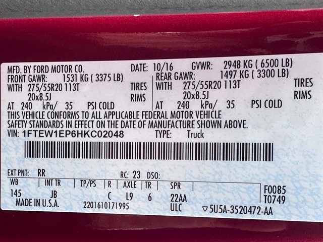 VIN 1FTEW1EP6HKC02048