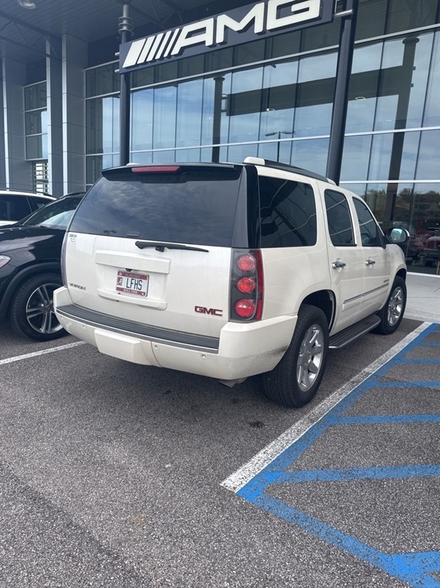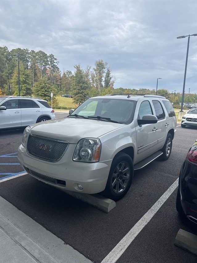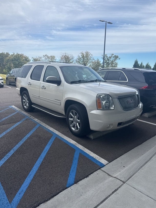 This 2013 GMC Yukon Denali in White Diamond Tricoat comes with the following features: Vortec 6.2L V8 SFI VVT Flex Fuel 6-Speed Automatic Electronic with Overdrive RWD Autoride Suspension Package (Automatic Air Level Control), Denali Package (2nd Row Power Seat Release Only, 2nd Row Reclining Captain`s Bucket Seats, Auxiliary External Transmission Oil Cooler, Body-Color Power-Adjustable Heated Outside Mirrors, Color-Keyed Heated Leather-Wrapped Steering Wheel, Front Round Halogen Fog Lamps, Heated & Cooled Driver & Front Passenger Seats, Heated 2nd Row Seats, Heavy-Duty Air-to-Oil External Engine Oil Cooler, Luggage Rack Center Rails, Power-Adjustable Pedals For Accelerator & Brake, Rear Power-Operated Liftgate, Remote Vehicle Starter System, Side Blind Zone Alert, and Universal Home Remote), Sun, Entertainment & Destinations Package (Inside Rear-View Auto-Dimming Mirror, Power Tilt-Sliding Sunroof w/Express-Open/Close, and Rear-Seat DVD Player Entertainment System), 10 Speakers, 20`` x 8.5`` Chrome Aluminum Wheels, 3.42 Rear Axle Ratio, 3rd row seats: split-bench, 4-Wheel Disc Brakes, ABS brakes, Adjustable pedals, Air Conditioning, Alloy wheels, AM/FM radio: SiriusXM, Auto-dimming door mirrors, Auto-dimming Rear-View mirror, Auto-leveling suspension, Automatic temperature control, Bodyside moldings, Bumpers: body-color, CD player, Chrome wheels, Compass, Delay-off headlights, Driver door bin, Driver vanity mirror, Dual front impact airbags, Dual front side impact airbags, DVD-Audio, Electronic Stability Control, Emergency communication system: OnStar Directions & Connections, Exterior Parking Camera Rear, Floor Console w/Storage Area, Front anti-roll bar, Front Bucket Seats, Front Center Armrest, Front dual zone A/C, Front fog lights, Front Full-Feature Reclining Bucket Seats, Front reading lights, Front wheel independent suspension, Fully automatic headlights, Garage door transmitter, Heated door mirrors, Heated front seats, Heated rear seats, Heated steering wheel, Illuminated entry, Leather Shift Knob, Leather steering wheel, Low tire pressure warning, Memory seat, Navigation System, NavTraffic, Occupant sensing airbag, Outside temperature display, Overhead airbag, Overhead console, Panic alarm, Passenger door bin, Passenger vanity mirror, Pedal memory, Perforated Nuance Leather-Appointed Seat Trim, Power door mirrors, Power driver seat, Power Liftgate, Power passenger seat, Power steering, Power windows, Radio data system, Radio: AM/FM/SiriusXM Stereo w/CD/Navigation, Rear air conditioning, Rear anti-roll bar, Rear audio controls, Rear reading lights, Rear Vision Camera, Rear window defroster, Rear window wiper, Remote keyless entry, Roof rack, Security system, SiriusXM Satellite Radio, Speed control, Split folding rear seat, Spoiler, Steering wheel memory, Steering wheel mounted audio controls, Tachometer, Tilt steering wheel, Traction control, Trip computer, Turn signal indicator mirrors, USB Port, Variably intermittent wipers, Ventilated front seats, and Voltmeter.