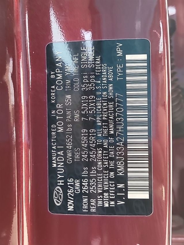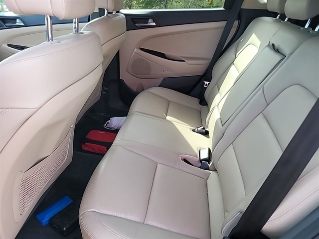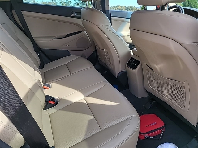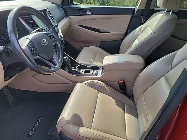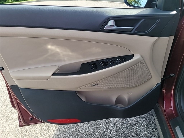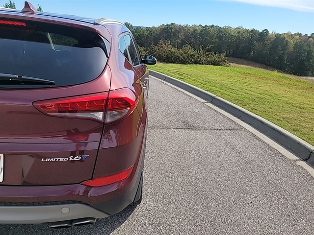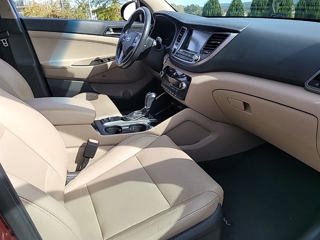 This 2017 Hyundai Tucson Limited in Ruby Wine comes with the following features: 1.6L I4 DGI Turbocharged DOHC 16V ULEV II 175hp 7-Speed Automatic FWD Option Group 01, 19`` Alloy Wheels, 4-Wheel Disc Brakes, 8 Speakers, ABS brakes, Air Conditioning, Alloy wheels, AM/FM radio: SiriusXM, Apple CarPlay & Android Auto, Auto-dimming Rear-View mirror, Automatic temperature control, Axle Ratio: 3.579, Brake assist, Bumpers: body-color, Cargo Cover, Cargo Net, Carpeted Floor Mats, Compass, Delay-off headlights, Driver door bin, Driver vanity mirror, Dual front impact airbags, Dual front side impact airbags, Electronic Stability Control, Emergency communication system: Blue Link, Exterior Parking Camera Rear, First Aid Kit, Four wheel independent suspension, Front anti-roll bar, Front Bucket Seats, Front Center Armrest, Front dual zone A/C, Front fog lights, Front reading lights, Fully automatic headlights, Garage door transmitter: HomeLink, Heated door mirrors, Heated Front Bucket Seats w/Power Driver`s Seat, Heated front seats, Illuminated entry, Leather Seat Trim, Leather Shift Knob, Low tire pressure warning, Mudguards, Occupant sensing airbag, Outside temperature display, Overhead airbag, Overhead console, Panic alarm, Passenger door bin, Passenger vanity mirror, Power door mirrors, Power driver seat, Power Liftgate, Power passenger seat, Power steering, Power windows, Radio: Infinity AM/FM/HD Radio/MP3 Audio System, Rear anti-roll bar, Rear Parking Sensors, Rear seat center armrest, Rear window defroster, Rear window wiper, Remote keyless entry, Roof rack: rails only, Security system, Speed control, Speed-sensing steering, Split folding rear seat, Spoiler, Steering wheel mounted audio controls, Tachometer, Telescoping steering wheel, Tilt steering wheel, Traction control, Trip computer, Turn signal indicator mirrors, Variably intermittent wipers, and Wheel Locks.