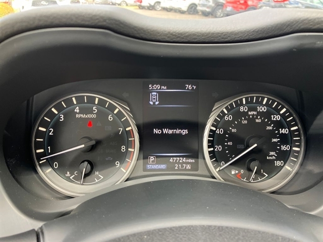 ***Manager Special - PRICE NOT A MISPRINT - THIS MONTH ONLY!!*, *Back Up Warning Sensors*, *Blind Spot Technology - Never Worry When Changing Lanes Again*, *Bluetooth Hands-Free Calling*, *Moonroof*, *Power Folding Mirrors*, *Push Button Start*, *Rear View Back-Up Camera*, *Remote Start*, AM/FM radio: SiriusXM, Apple CarPlay/Android Auto, Auto High-beam Headlights, Auto tilt-away steering wheel, Auto-dimming Rear-View mirror, Automatic temperature control, Blind Spot Warning, Brake assist, Cargo Net, Cargo Package, CD player, Compass, Delay-off headlights, Driver vanity mirror, Dual front impact airbags, Dual front side impact airbags, Electronic Stability Control, Emergency communication system: INFINITI Connection, First Aid Kit, Front dual zone A/C, Front fog lights, Fully automatic headlights, Garage door transmitter: HomeLink, Heated door mirrors, Heated front seats, Heated steering wheel, Illuminated entry, Leather Seating Surfaces, Low tire pressure warning, Memory seat, Occupant sensing airbag, Outside temperature display, Overhead airbag, Overhead console, Panic alarm, Passenger vanity mirror, Power door mirrors, Power moonroof, Power passenger seat, Rain sensing wipers, Rear USB Charging Ports, Remote keyless entry, Security system, Shopping Bag Hooks, Speed-Sensitive Wipers, Splash Guards, Steering wheel memory, Steering wheel mounted audio controls, Tachometer, Telescoping steering wheel, Tilt steering wheel, Trip computer, Trunk Mat, Turn signal indicator mirrors, Variably intermittent wipers.