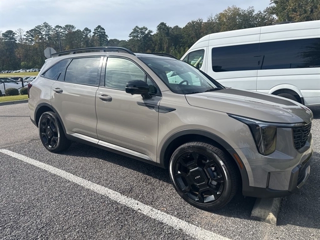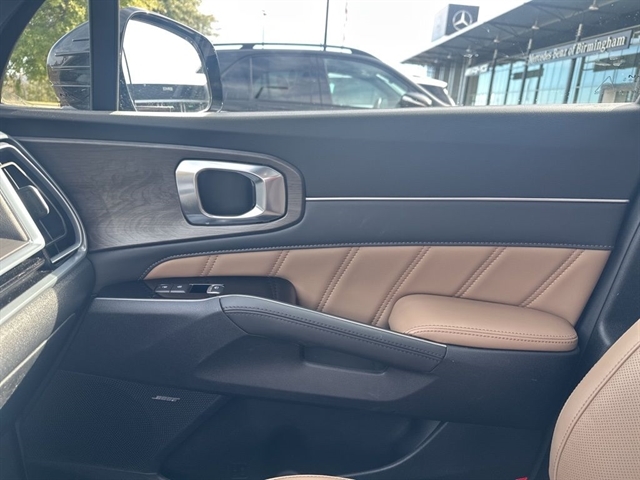 This 2024 Kia Sorento X-Line SX Prestige in Road Rider Brown comes with the following features: 2.5L I4 DGI Turbocharged DOHC 16V LEV3-SULEV30 281hp 8-Speed DCT AWD AWD Olive Brown Leather Package, AWD, 12 Speakers, 3.316 Axle Ratio, 3rd row seats: split-bench, 4-Wheel Disc Brakes, ABS brakes, Air Conditioning, Alloy wheels, AM/FM radio: SiriusXM, Apple CarPlay & Android Auto, Auto High-beam Headlights, Auto-dimming Rear-View mirror, Automatic temperature control, Brake assist, Bumpers: body-color, Carpeted Floor Mats, Delay-off headlights, Driver door bin, Driver vanity mirror, Dual front impact airbags, Dual front side impact airbags, Electronic Stability Control, Emergency communication system: 911 Connect, Exterior Parking Camera Rear, Four wheel independent suspension, Front anti-roll bar, Front Bucket Seats, Front Center Armrest, Front dual zone A/C, Front fog lights, Front reading lights, Fully automatic headlights, Garage door transmitter: HomeLink, Heated & Ventilated Front Bucket Seats, Heated door mirrors, Heated front seats, Heated rear seats, Heated steering wheel, Illuminated entry, Knee airbag, Leather steering wheel, Low tire pressure warning, Memory seat, Navigation System, Occupant sensing airbag, Outside temperature display, Overhead airbag, Overhead console, Panic alarm, Passenger door bin, Passenger vanity mirror, Perforated Genuine Leather Seat Trim, Power door mirrors, Power driver seat, Power Liftgate, Power moonroof, Power passenger seat, Power steering, Power windows, Radio data system, Radio: AM/FM Bose Premium Audio System, Rain sensing wipers, Rear anti-roll bar, Rear reading lights, Rear side impact airbag, Rear window defroster, Rear window wiper, Remote keyless entry, Security system, Smart Key w/ Push Button and Remote Start, Speed control, Speed-sensing steering, Split folding rear seat, Spoiler, Steering wheel mounted audio controls, Tachometer, Telescoping steering wheel, Tilt steering wheel, Traction control, Trip computer, Turn signal indicator mirrors, Variably intermittent wipers, Ventilated front seats, and Wheels: 8.5J x 20`` Gloss Black X-Line Alloy.