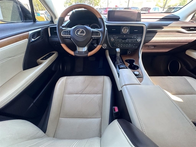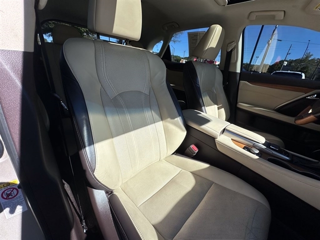 This 2018 Lexus RX 350 in comes with the following features: 3.5L V6 DOHC 24V 8-Speed Automatic FWD ***Manager Special - PRICE NOT A MISPRINT - THIS MONTH ONLY!!*, *Blind Spot Technology - Never Worry When Changing Lanes Again*, *Bluetooth Hands-Free Calling*, *Push Button Start*, and *We Deliver Anywhere* Parchment w/Leather Seat Trim, 9 Speakers, Air Conditioning, Alloy wheels, Auto High-beam Headlights, Auto-dimming Rear-View mirror, Automatic temperature control, Backup Monitor, CD player, Compass, Delay-off headlights, Distance pacing cruise control: All-Speed Dynamic Radar Cruise Control, Driver vanity mirror, Dual front impact airbags, Dual front side impact airbags, Exterior Parking Camera Rear, Front dual zone A/C, Front fog lights, Fully automatic headlights, Garage door transmitter: HomeLink, Heated door mirrors, Illuminated entry, Knee airbag, Low tire pressure warning, Occupant sensing airbag, Outside temperature display, Overhead airbag, Overhead console, Panic alarm, Power door mirrors, Power Liftgate, Power passenger seat, Radio: AM/FM/CD Lexus Display Audio, Rain sensing wipers, Rear side impact airbag, Rear window wiper, Remote keyless entry, Security system, Steering wheel mounted audio controls, Tachometer, Telescoping steering wheel, Tilt steering wheel, Trip computer, and Variably intermittent wipers Parchment w/Leather Seat Trim, 9 Speakers, Air Conditioning, Alloy wheels, Auto High-beam Headlights, Auto-dimming Rear-View mirror, Automatic temperature control, Backup Monitor, CD player, Compass, Delay-off headlights, Distance pacing cruise control: All-Speed Dynamic Radar Cruise Control, Driver vanity mirror, Dual front impact airbags, Dual front side impact airbags, Exterior Parking Camera Rear, Front dual zone A/C, Front fog lights, Fully automatic headlights, Garage door transmitter: HomeLink, Heated door mirrors, Illuminated entry, Knee airbag, Low tire pressure warning, Occupant sensing airbag, Outside temperature display, Overhead airbag, Overhead console, Panic alarm, Power door mirrors, Power Liftgate, Power passenger seat, Radio: AM/FM/CD Lexus Display Audio, Rain sensing wipers, Rear side impact airbag, Rear window wiper, Remote keyless entry, Security system, Steering wheel mounted audio controls, Tachometer, Telescoping steering wheel, Tilt steering wheel, Trip computer, Variably intermittent wipers, 3.329 Axle Ratio, 4-Wheel Disc Brakes, ABS brakes, AM/FM radio: SiriusXM, Anti-whiplash front head restraints, Brake assist, Bumpers: body-color, Driver door bin, Electronic Stability Control, Four wheel independent suspension, Front anti-roll bar, Front Bucket Seats, Front Center Armrest, Front reading lights, Leather Shift Knob, Leather steering wheel, Passenger door bin, Passe