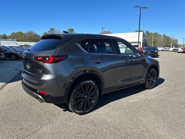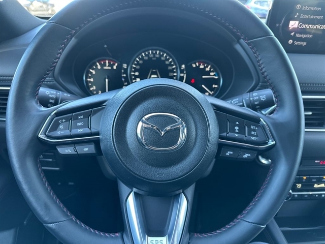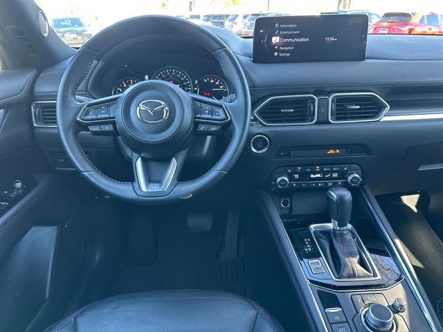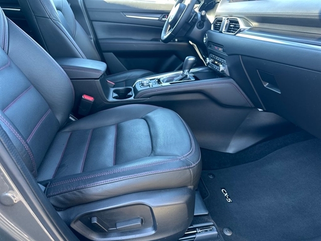 This 2022 Mazda CX-5 2.5 Turbo in Machine Gray Metallic comes with the following features: 2.5L I4 6-Speed Automatic AWD *Bluetooth Hands-Free Calling*, *Keyless Entry*, *Moonroof*, *Push Button Start*, *Rear View Back-Up Camera*, and *We Deliver Anywhere* 10 Speakers, 4-Wheel Disc Brakes, 4.411 Axle Ratio, ABS brakes, Air Conditioning, Alloy wheels, AM/FM radio: SiriusXM, AppLink/Apple CarPlay and Android Auto, Auto High-beam Headlights, Auto-dimming Rear-View mirror, Automatic temperature control, Black Lug Nuts & Black Wheel Locks, Brake assist, Bumpers: body-color, Delay-off headlights, Driver door bin, Driver vanity mirror, Dual front impact airbags, Dual front side impact airbags, E911 Automatic Emergency Notification, Electronic Stability Control, Emergency communication system: MAZDA CONNECT, Exterior Parking Camera Rear, Four wheel independent suspension, Front anti-roll bar, Front Bucket Seats, Front Center Armrest w/Storage, Front dual zone A/C, Front reading lights, Fully automatic headlights, Garage door transmitter: HomeLink, Heads-Up Display, Heated door mirrors, Heated front seats, Heated rear seats, Heated steering wheel, Heated/Ventilated Front Bucket Seats, Illuminated entry, Infotainment System Voice Command, Leather Seat Trim, Leather Shift Knob, Low tire pressure warning, Machine Gray Metallic Paint, Memory seat, Multifunction Commander Control, Occupant sensing airbag, Outside temperature display, Overhead airbag, Overhead console, Pandora, Panic alarm, Passenger door bin, Passenger vanity mirror, Power door mirrors, Power driver seat, Power Liftgate, Power moonroof, Power passenger seat, Power steering, Power windows, Premium audio system: Bose, Radio Broadcast Data System Program Information, Radio data system, Radio: AM/FM/HD Audio Syst