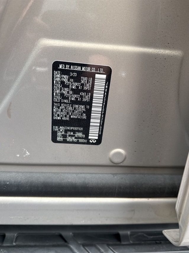 *3rd Row Seating*, ***Manager Special - PRICE NOT A MISPRINT - THIS MONTH ONLY!!*, *Back Up Warning Sensors*, *Blind Spot Technology - Never Worry When Changing Lanes Again*, *Bluetooth Hands-Free Calling*, *Factory Certified Pre-owned Vehicle!*, *Factory Recommended Maintenance all Complete and Brought to Current Standards!*, *Heated Front Leather Seats*, *Keyless Entry*, *Moonroof*, *Navigation*, *Push Button Start*, *Rear View Back-Up Camera*, *Remote Start*, *Second Row Captains Chairs*, *We Deliver Anywhere*, Rare color combo Come Check it out, 13 Speakers, 3rd row seats: split-bench, Air Conditioning, AM/FM radio: SiriusXM, Auto High-beam Headlights, Auto tilt-away steering wheel, Auto-dimming door mirrors, Auto-dimming Rear-View mirror, Automatic temperature control, Cargo Net, Cargo Package, Carpeted Cargo Mat, Center Console Tray, Compass, Console Net, Delay-off headlights, Driver vanity mirror, Dual front impact airbags, Dual front side impact airbags, Emergency communication system: INFINITI InTouch, First-Aid Kit, Front dual zone A/C, Front fog lights, Front reading lights, Fully automatic headlights, Garage door transmitter: HomeLink, Heated door mirrors, Heated front seats, Heated steering wheel, Illuminated entry, INFINITI Radiant Illuminated Kick Plates, Low tire pressure warning, Memory seat, Occupant sensing airbag, Outside temperature display, Overhead airbag, Overhead console, Panic alarm, Passenger vanity mirror, Power door mirrors, Power Liftgate, Power moonroof, Power passenger seat, Premium audio system: Bose, Premium Select Sahara Stone Interior, Radio: Bose Premium Audio System w/13 Speakers, Rain sensing wipers, Rear air conditioning, Reclining 3rd row seat, Remote keyless entry, Security system, Steering wheel memory, Steering wheel mounted audio controls, Tachometer, Telescoping steering wheel, Tilt steering wheel, Trip computer, Turn signal indicator mirrors, Variably intermittent wipers, Voltmeter.