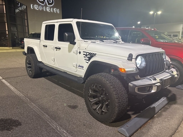 This 2021 Jeep Gladiator Overland in Bright White Clearcoat comes with the following features: 3.6L V6 24V VVT 8-Speed Automatic 4WD ***Manager Special - PRICE NOT A MISPRINT - THIS MONTH ONLY!!*, *Bluetooth Hands-Free Calling*, *Heated Front Leather Seats*, *Push Button Start*, *Rear View Back-Up Camera*, and INFINITI Premium Care - Includes 3yrs Maintenance on all 2023 and newer vehicles. 8.4`` Radio & Premium Audio Group (1-Year SiriusXM Guardian Trial, 5-Year SiriusXM Traffic Service, 5-Year SiriusXM Travel Link Service, 8.4`` Touchscreen Display, Alpine Premium Audio System, Auto-Dimming Rear-View Mirror, Emergency/Assistance Call, For Details, Visit DriveUconnect.com, GPS Navigation, HD Radio, Radio: Uconnect 4C Nav w/8.4`` Display, SiriusXM Traffic Plus, and SiriusXM Travel Link), LED Lighting Group (Daytime Running Lamps LED Accents, Front LED Fog Lamps, LED Park Turn Lamps, LED Premium Reflector Headlamps, and LED Taillamps), Popular Equipment Package (Black 3-Piece Hard Top, Leather Trimmed Bucket Seats, Leather Wrapped Park Brake Handle, Off-Road Info Pages, and Rear Sliding Window), Quick Order Package 24G, Trailer Tow Package (240 Amp Alternator, Class IV Hitch Receiver, Heavy-Duty Engine Cooling, and Trailer Hitch Zoom), 400W Inverter, 700 Amp Maintenance Free Battery, ABS brakes, Air Conditioning, Automatic temperature control, Compass, Delay-off headlights, Driver vanity mirror, Dual front impact airbags, Dual front side impact airbags, Electronic Stability Control, Front dual zone A/C, Front fog lights, Fully automatic headlights, Garage door transmitter, Heated door mirrors, Heated Front Seats, Heated Steering Wheel, Illuminated entry, Leather steering wheel, Low tire pressure warning, MOPAR Satin Black Grille, MOPAR Spray In Bedliner, Occupant sensing airbag, Outside temperature display, Panic alarm, ParkView Rear Back-Up Camera, Passenger vanity mirror, Power door mirrors, Radio: Uconnect 4 w/7`` Display, Remote keyless entr
