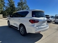 This 2019 INFINITI QX80 LUXE in Moonstone White comes with the following features: 5.6L V8 7-Speed Automatic RWD Cargo Package (First-Aid Kit, High-Density Non-Slip Rear Cargo Carpet, and Nylon-Cord Cargo Net), 13 Speakers, 2.94 Axle Ratio, 3rd row seats: split-bench, 4-Wheel Disc Brakes, ABS brakes, Air Conditioning, Alloy wheels, AM/FM radio: SiriusXM, Anti-whiplash front head restraints, Auto High-beam Headlights, Auto tilt-away steering wheel, Auto-dimming door mirrors, Auto-dimming Rear-View mirror, Auto-leveling suspension, Automatic temperature control, Brake assist, Bumpers: body-color, CD player, Delay-off headlights, Driver door bin, Driver vanity mirror, Dual front impact airbags, Dual front side impact airbags, DVD-Audio, Electronic Stability Control, Emergency communication system: INFINITI Connection, Four wheel independent suspension, Front anti-roll bar, Front Bucket Seats, Front Center Armrest, Front dual zone A/C, Front fog lights, Front reading lights, Fully automatic headlights, Garage door transmitter: HomeLink, Genuine wood console insert, Genuine wood dashboard insert, Genuine wood door panel insert, Heated door mirrors, Heated Front Bucket Seats, Heated front seats, Heated steering wheel, Illuminated entry, INFINITI Radiant Welcome Lighting, Leather Shift Knob, Leather steering wheel, Leather-Appointed Seats w/Stratford Burl Trim, Literature Kit, Low tire pressure warning, Memory seat, Navigation system: INFINITI InTouch Navigation, Occupant sensing airbag, Outside temperature display, Overhead airbag, Overhead console, Panic alarm, Passenger door bin, Passenger vanity mirror, Power door mirrors, Power driver seat, Power Liftgate, Power moonroof, Power passenger seat, Power steering, Power windows, Radio data system, Radio: AM/FM/HD w/Single In-Dash CD/DVD Player & MP3, Rain sensing wipers, Rear air conditioning, Rear anti-roll bar, Rear audio controls, Rear reading lights, Rear seat center armrest, Rear window defroster, Rear window wiper, Reclining 3rd row seat, Remote keyless entry, Roof rack: rails only, Roof Rail Cross Bars, Security system, Speed control, Speed-sensing steering, Split folding rear seat, Spoiler, Steering wheel memory, Steering wheel mounted audio controls, Tachometer, Telescoping steering wheel, Tilt steering wheel, Traction control, Trip computer, Turn signal indicator mirrors, Variably intermittent wipers, Voltmeter, and Wheels: 20`` x 8.0`` Aluminum-Alloy.