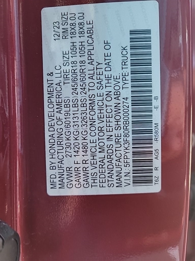 VIN | 5FPYK3F80RB000274 |