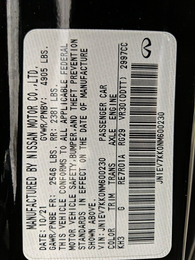 ***Manager Special - PRICE NOT A MISPRINT - THIS MONTH ONLY!!*, *Bluetooth Hands-Free Calling*, *Factory Certified Pre-owned Vehicle!*, *Moonroof*, *Push Button Start*, *We Deliver Anywhere*, 13 Speakers, Alloy wheels, AM/FM radio: SiriusXM, Apple CarPlay/Android Auto, Auto High-beam Headlights, Auto-dimming Rear-View mirror, Automatic temperature control, Blind Spot Warning, Brake assist, Cargo Net, Cargo Package, Carpeted Trunk Mat, CD player, Compass, Delay-off headlights, Driver door bin, Driver vanity mirror, Dual front impact airbags, Dual front side impact airbags, Emergency communication system: INFINITI Connection, Front dual zone A/C, Front fog lights, Fully automatic headlights, Garage door transmitter: HomeLink, Heated door mirrors, Heated front seats, Heated steering wheel, Illuminated entry, Illuminated Kick Plates, Leather Shift Knob, Leather steering wheel, Low tire pressure warning, Occupant sensing airbag, Outside temperature display, Overhead airbag, Overhead console, Panic alarm, Passenger vanity mirror, Power door mirrors, Power moonroof, Power passenger seat, Radio: INFINITI InTouch w/AM/FM/HD/CD, Rain sensing wipers, Remote keyless entry, Security system, Semi-Aniline Leather-Appointed Seating Surfaces, Speed-sensing steering, Speed-Sensitive Wipers, Steering wheel mounted audio controls, Tachometer, Telescoping steering wheel, Tilt steering wheel, Trip computer, Variably intermittent wipers, Wheels: 19`` x 9`` Aluminum-Alloy.