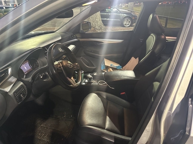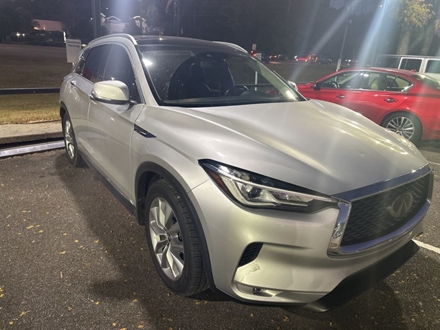 This 2019 INFINITI QX50 LUXE in Liquid Platinum comes with the following features: I4 CVT FWD ***Manager Special - PRICE NOT A MISPRINT - THIS MONTH ONLY!!*, *Bluetooth Hands-Free Calling*, and *Heated Front Leather Seats* 6 Speakers, Auto-dimming Rear-View mirror, Automatic temperature control, CD player, Delay-off headlights, Driver door bin, Driver vanity mirror, Dual front impact airbags, Dual front side impact airbags, Electronic Stability Control, Exterior Parking Camera Rear, Front anti-roll bar, Front dual zone A/C, Front fog lights, Garage door transmitter: HomeLink, Heated Front Seats, Illuminated entry, Illuminated Kick Plates, Knee airbag, Low tire pressure warning, Occupant sensing airbag, Outside temperature display, Overhead airbag, Overhead console, Panic alarm, Passenger vanity mirror, Power door mirrors, Power driver seat, Power Liftgate, Power moonroof, Power passenger seat, Rear anti-roll bar, Rear window wiper, Remote keyless entry, Roof rack: rails only, Security system, Speed-sensing steering, Speed-Sensitive Wipers, Splash Guards (Set of 4), Steering wheel mounted audio controls, Tachometer, Tilt steering wheel, Trip computer, Turn signal indicator mirrors, and Welcome Lighting Cargo Package, Protection Package, 6 Speakers, Auto-dimming Rear-View mirror, Automatic temperature control, CD player, Delay-off headlights, Driver door bin, Driver vanity mirror, Dual front impact airbags, Dual front side impact airbags, Electronic Stability Control, Exterior Parking Camera Rear, Front anti-roll bar, Front dual zone A/C, Front fog lights, Garage door transmitter: HomeLink, Heated Front Seats, Illuminated entry, Illuminated Kick Plates, Knee airbag, Low tire pressure warning, Occupant sensing airbag, Outside temperature display, Overhead airbag, Overhead console, Panic alarm, Passenger vanity mirror, Power door mirrors, Power driver seat, Power Liftgate, Power moonroof, Power passenger seat, Rear anti-roll bar, Rear window wiper, Remote keyless entry, Roof rack: rails only, Security system, Speed-sensing steering, Speed-Sensitive Wipers, Splash Guards (Set of 4), Steering wheel mounted audio controls, Tachometer, Tilt steering wheel, Trip computer, Turn signal indicator mirrors, Welcome Lighting, 4-Wheel Disc Brakes, 5.846 Axle Ratio, ABS brakes, Activation Disclaimer, Air Conditioning, Alloy wheels, AM/FM radio: SiriusXM, AM/FM/CD Audio System, Anti-whiplash front head restraints, Brake assist, Bumpers: body-color, Floor Mats, Four wheel independent suspension, Front Bucket Seats, Front Center Armrest, Front reading lights, Leather Shift Knob, Leatherette Appointed Seat Trim, Literature Kit, Passenger door bin, Power steering, Power windows, Radio data system, Rear reading lights, Rear seat center armrest, Rear window defroster, Speed control, Split folding rear seat, Spoiler, Telescoping steering wheel, Trac