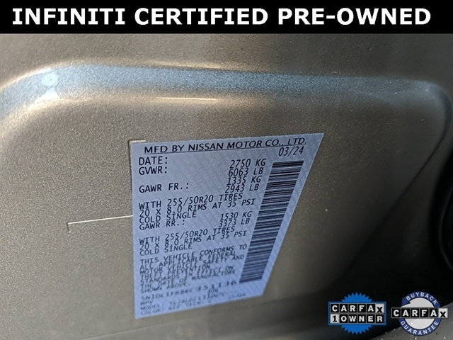 INFINITI Certified Pre-Owned means you not only get the reassurance of a 6yr/unlimited mileage warranty, but also a 167-point inspection/reconditioning, complimentary first year basic maintenance, 24/7 roadside assistance, trip-interruption services, free 3-month trial subscription to SiriusXM Satellite Radio, complimentary service courtesy vehicle, and a complete CARFAX vehicle history report.