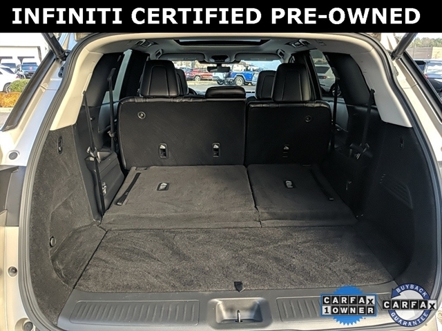 *3rd Row Seating*, ***Manager Special - PRICE NOT A MISPRINT - THIS MONTH ONLY!!*, *Back Up Warning Sensors*, *Keyless Entry*, *Panoramic Moonroof*, *Push Button Start*, *Remote Start*, *We Deliver Anywhere*, 3rd row seats: bench, AM/FM radio: SiriusXM, Apple CarPlay/Android Auto, Auto High-beam Headlights, Auto tilt-away steering wheel, Auto-dimming door mirrors, Auto-dimming Rear-View mirror, Automatic temperature control, Climate Controlled Front Bucket Seats, Delay-off headlights, Driver vanity mirror, Dual front impact airbags, Dual front side impact airbags, Electronic Stability Control, Emergency communication system: INFINITI InTouch, Exterior Parking Camera Rear, Front dual zone A/C, Fully automatic headlights, Garage door transmitter: HomeLink, Heated door mirrors, Heated front seats, Heated steering wheel, Illuminated entry, Knee airbag, Literature Kit, Low tire pressure warning, Memory seat, Navigation system: INFINITI InTouch Navigation, Occupant sensing airbag, Outside temperature display, Overhead airbag, Overhead console, Panic alarm, Passenger vanity mirror, Power door mirrors, Power driver seat, Power Liftgate, Power moonroof, Power passenger seat, Radio: AM/FM Audio System, Rain sensing wipers, Rear air conditioning, Rear side impact airbag, Rear window wiper, Remote keyless entry, Roof rack: rails only, Security system, Speed-Sensitive Wipers, Splash Guards (Set of 4), Split folding rear seat, Steering wheel memory, Steering wheel mounted audio controls, Tachometer, Telescoping steering wheel, Tilt steering wheel, Trip computer, Turn signal indicator mirrors, Variably intermittent wipers, Ventilated front seats, Wheels: 20`` x 8J Sporty Machined Aluminum Alloy.