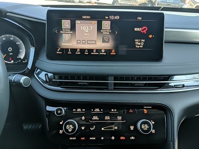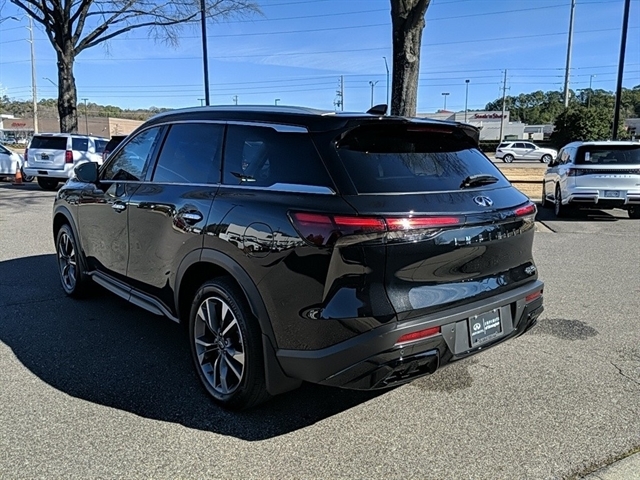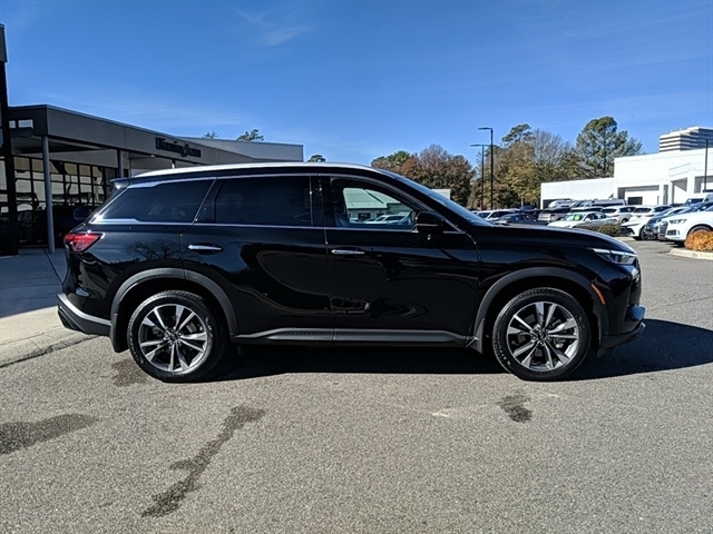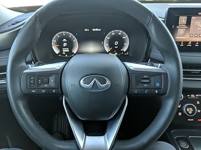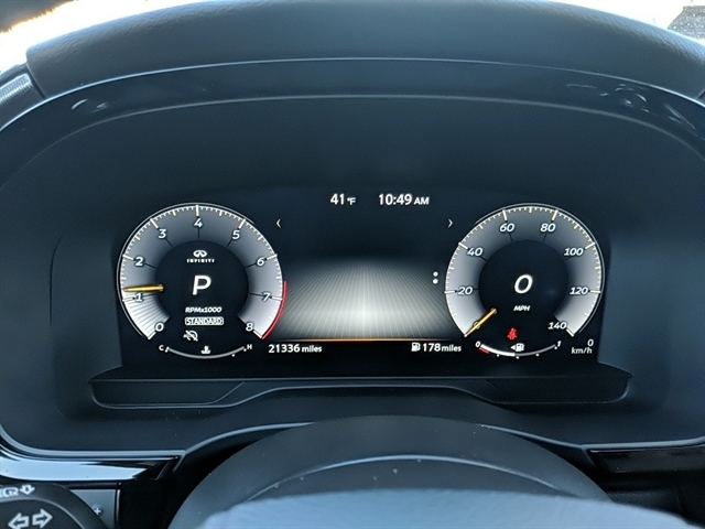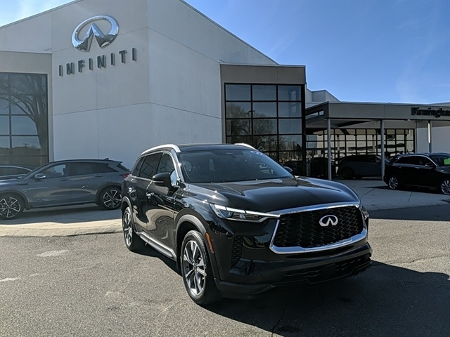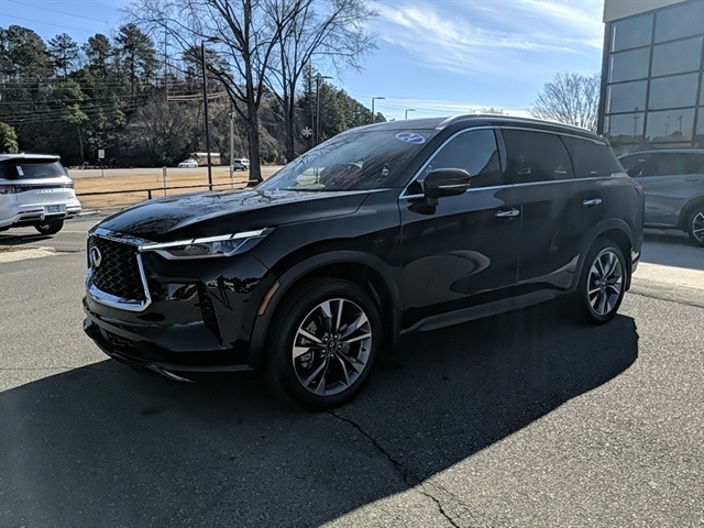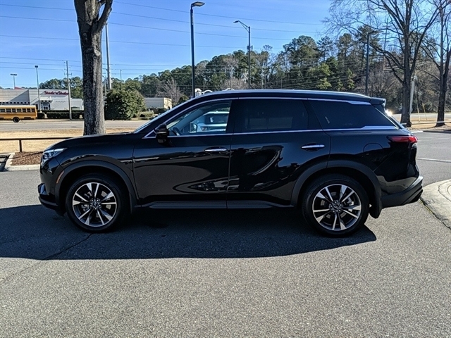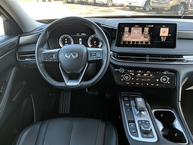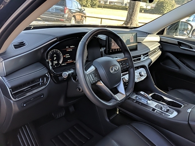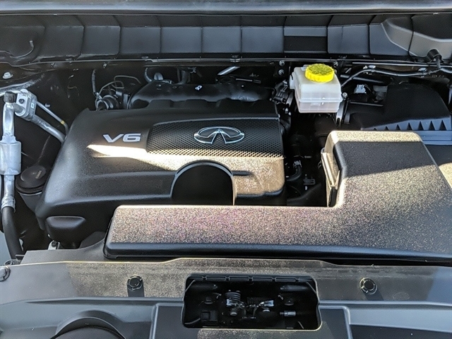 *3rd Row Seating*, *Bluetooth Hands-Free Calling*, *Keyless Entry*, *Navigation*, *Power Folding Mirrors*, *Push Button Start*, *Remote Start*, *We Deliver Anywhere*, 3rd row seats: bench, 4-Wheel Disc Brakes, 9 Speakers, ABS brakes, Air Conditioning, Anti-whiplash front head restraints, Apple CarPlay/Android Auto, Auto High-beam Headlights, Auto tilt-away steering wheel, Auto-dimming door mirrors, Auto-dimming Rear-View mirror, Automatic temperature control, Brake assist, Bumpers: body-color, Climate Controlled Front Bucket Seats, Delay-off headlights, Driver door bin, Driver vanity mirror, Dual front impact airbags, Dual front side impact airbags, Emergency communication system: INFINITI InTouch, Exterior Parking Camera Rear, Four wheel independent suspension, Front anti-roll bar, Front Bucket Seats, Front Center Armrest, Front dual zone A/C, Front reading lights, Fully automatic headlights, Garage door transmitter: HomeLink, Heated door mirrors, Heated front seats, Heated steering wheel, Illuminated entry, Knee airbag, Leather Shift Knob, Leather steering wheel, Leather-Appointed Seating Surfaces, Low tire pressure warning, Memory seat, Occupant sensing airbag, Outside temperature display, Overhead airbag, Overhead console, Panic alarm, Passenger vanity mirror, Power door mirrors, Power driver seat, Power Liftgate, Power moonroof, Power passenger seat, Power steering, Power windows, Radio data system, Radio: AM/FM Audio System, Rain sensing wipers, Rear air conditioning, Rear reading lights, Rear seat center armrest, Rear window defroster, Rear window wiper, Reclining 3rd row seat, Remote keyless entry, Roof rack: rails only, Security system, Speed control, Speed-sensing steering, Speed-Sensitive Wipers, Splash Guards (Set of 4), Split folding rear seat, Spoiler, Steering wheel memory, Steering wheel mounted audio controls, Tachometer, Telescoping steering wheel, Tilt steering wheel, Trip computer, Turn signal indicator mirrors, USB Charging Cable Set, Variably intermittent wipers, Ventilated front seats.