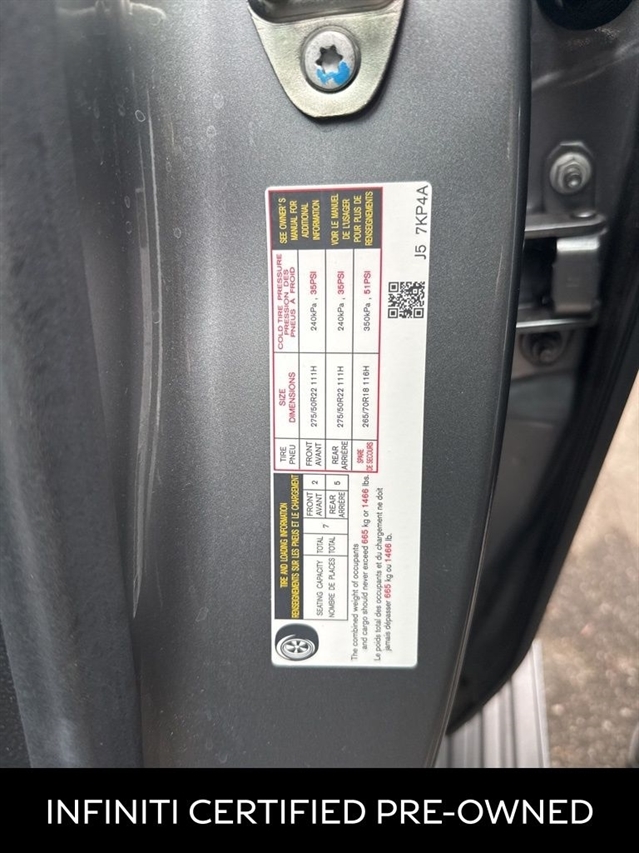 *3rd Row Seating*, ***Manager Special - PRICE NOT A MISPRINT - THIS MONTH ONLY!!*, *Back Up Warning Sensors*, *Blind Spot Technology - Never Worry When Changing Lanes Again*, *Bluetooth Hands-Free Calling*, *Bought Here, Serviced Here, We Have All Records!*, *Heated And Cooled Front Leather Seats*, *Keyless Entry*, *Navigation*, *Panoramic Moonroof*, *Push Button Start*, *Rear View Back-Up Camera*, *Remote Start*, *We Deliver Anywhere*, Sensory Package under $80k What a Great Deal, Come out and Test Drive., 3rd row seats: bench, 4-Wheel Disc Brakes, ABS brakes, Adaptive suspension, Air Conditioning, AM/FM radio: SiriusXM with 360L, Anti-whiplash front head restraints, Apple CarPlay/Android Auto, Audio memory, Auto High-beam Headlights, Auto tilt-away steering wheel, Auto-dimming door mirrors, Auto-dimming Rear-View mirror, Auto-leveling suspension, Automatic temperature control, Brake assist, Bumpers: body-color, Center Front Spoiler, Climate Controlled Front Bucket Seats w/Massage, Compass, Delay-off headlights, Driver door bin, Driver vanity mirror, Dual front impact airbags, Dual front side impact airbags, Electronic Stability Control, Emergency communication system: INFINITI InTouch, Four wheel independent suspension, Front anti-roll bar, Front Bucket Seats, Front Center Armrest, Front dual zone A/C, Front reading lights, Fully automatic headlights, Garage door transmitter: myQ Connected Garage, Genuine wood dashboard insert, Genuine wood door panel insert, Heads-Up Display, Heated door mirrors, Heated front seats, Heated rear seats, Heated steering wheel, HVAC memory, Illuminated entry, Knee airbag, Leather steering wheel, Literature Kit, Low tire pressure warning, Memory seat, Navigation system: Google Built-in, Occupant sensing airbag, Outside temperature display, Overhead airbag, Overhead console, Panic alarm, Passenger door bin, Passenger vanity mirror, Power door mirrors, Power driver seat, Power Liftgate, Power moonroof, Power passenger seat, Power steering, Power windows, Premium Paint, Radio data system, Radio: Klipsch Reference Premiere Audio System, Rain sensing wipers, Rear air conditioning, Rear anti-roll bar, Rear reading lights, Rear seat center armrest, Rear window defroster, Rear window wiper, Reclining 3rd row seat, Remote keyless entry, Security system, Semi-Aniline Premium Leather Seating Surfaces, Speed control, Speed-sensing steering, Split folding rear seat, Spoiler, Steering wheel memory, Steering wheel mounted audio controls, Tachometer, Telescoping steering wheel, Tilt steering wheel, Traction control, Trip computer, Turn signal indicator mirrors, Variably intermittent wipers, Ventilated front seats, Ventilated rear seats, Wheels: 22`` x 8`` Cast Aluminum Alloy.