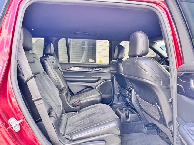 This 2021 Jeep Grand Cherokee L Altitude in Velvet Red Pearlcoat comes with the following features: 3.6L V6 24V VVT 8-Speed Automatic RWD Altitude Appearance Package, Quick Order Package 22B Altitude (115V Auxiliary Power Outlet, 3rd Row Charge-Only USB Ports, Black Headliner, Bridgestone Brand Tires, Delete Laredo Badge, Gloss Black Exterior Accents, Heated Front Seats, Heated Steering Wheel, Leather Trimmed Bucket Seats, Leather Wrapped Steering Wheel, Molded In Color Black/Gloss Black Roof Rails, Power Liftgate, Rain Sensitive Windshield Wipers, Remote Start System, Selectable Tire Fill Alert, Wheels: 20`` x 8.5`` Gloss Black Painted Aluminum, and Wireless Charging Pad), 3.45 Rear Axle Ratio, 3rd row seats: split-bench, 4-Wheel Disc Brakes, 6 Speakers, ABS brakes, Air Conditioning, Alloy wheels, AM/FM radio, Anti-whiplash front head restraints, Apple CarPlay/Android Auto, Automatic temperature control, Brake assist, Bumpers: body-color, Cloth Seats, Compass, Delay-off headlights, Driver door bin, Driver vanity mirror, Dual front impact airbags, Dual front side impact airbags, Electronic Stability Control, Emergency communication system, Four wheel independent suspension, Front anti-roll bar, Front Bucket Seats, Front Center Armrest w/Storage, Front dual zone A/C, Front reading lights, Fully automatic headlights, Heated door mirrors, Illuminated entry, Knee airbag, Low tire pressure warning, Manual Fold Seatbacks, Normal Duty Suspension, Occupant sensing airbag, Outside temperature display, Overhead airbag, Overhead console, Panic alarm, ParkView Rear Back-Up Camera, Passenger door bin, Passenger vanity mirror, Power door mirrors, Power driver seat, Power steering, Power windows, Radio data system, Radio: Uconnect 5 w/8.4`` Display, Rear air conditioning, Rear anti-roll bar, Rear reading lights, Rear window defroster, Rear window wiper, Reclining 3rd row seat, Remote keyless entry, Roof rack: rails only, Security system, Speed control, Speed-Sensitive Wipers, Split folding rear seat, Spoiler, Steering wheel mounted audio controls, Tachometer, Telescoping steering wheel, Tilt steering wheel, Traction control, Trip computer, Turn signal indicator mirrors, Variably intermittent wipers, and Wheels: 18`` x 8.0`` Fully Painted Aluminum.