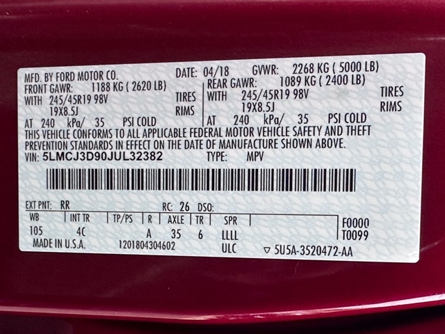 This 2018 Lincoln MKC Reserve in Ruby Red comes with the following features: 2.0L Turbocharged 6-Speed Automatic AWD ***Manager Special - PRICE NOT A MISPRINT - THIS MONTH ONLY!!*, *Back Up Warning Sensors*, *Blind Spot Technology - Never Worry When Changing Lanes Again*, *Bluetooth Hands-Free Calling*, *Moonroof*, *Push Button Start*, *Rear View Back-Up Camera*, *We Deliver Anywhere*, and All the Luxury for such an Affordable Price. Equipment Group 300A Reserve, Lincoln MKC Climate Package (Auto High Beams, Heated Rear-Seats, Heated Steering Wheel, Rain-Sensing Wipers, and Windshield Wiper De-Icer), Lincoln MKC Technology Package (Active Park Assist, Adaptive Cruise Control & Collision Warning, Forward Sensing System, and Lane Keeping System), 10 Speakers, Air Conditioning, AM/FM radio: SiriusXM, AppLink/Apple CarPlay and Android Auto, Auto tilt-away steering wheel, Auto-dimming Rear-View mirror, Automatic temperature control, Blind spot sensor: warning, Brake assist, CD player, Compass, Delay-off headlights, Front dual zone A/C, Front fog lights, Fully automatic headlights, High-Intensity Discharge Headlights, Navigation System, Radio: Audio System w/CD/MP3/Navigation, Security system, SiriusXM Satellite Radio, Speed control, and SYNC 3 Communications & Entertainment System Equipment Group 300A Reserve, Lincoln MKC Climate Package (Auto High Beams, Heated Rear-Seats, Heated Steering Wheel, Rain-Sensing Wipers, and Windshield Wiper De-Icer), Lincoln MKC Technology Package (Active Park Assist, Adaptive Cruise Control & Collision Warning, Forward Sensing System, and Lane Keeping System), 10 Speakers, Air Conditioning, AM/FM radio: SiriusXM, AppLink/Apple CarPlay and Android Auto, Auto tilt-away steering wheel, Auto-dimming Rear-View mirror, Automatic temperature control, Blind spot sensor: warning, Brake assist, CD player, Compass, Delay-off headlights, Front dual zone A/C, Front fog lights, Fully automatic headlights, High-Intensity Discharge Headlights, Navigation System, Radio: Audio System w/CD/MP3/Navigation, Security system, SiriusXM Satellite Radio, Speed control, SYNC 3 Communications & Entertainment System, 3.51 Axle Ratio, 4-Wheel Disc Brakes, ABS brakes, Adaptive suspension, Alloy wheels, Bumpers: body-color, Driver door bin, Driver vanity mirror, Dual front impact airbags, Dual front side impact airbags, Electronic Stability Control, Emergency communication system: SYNC 3 911 Assist, Exterior Parking Camera Rear, Four wheel independent suspension, Front anti-roll bar, Front Bucket Seats, Front Center Armrest, Front reading lights, Garage door transmitter: HomeLink, Genuine wood dashboard insert, Genuine wood door panel insert, Heated door mirrors, Heated front seats, Illuminated entry, Knee airbag, Low tire pressure warning, Memory seat, Occupant sensing airbag, Outside te