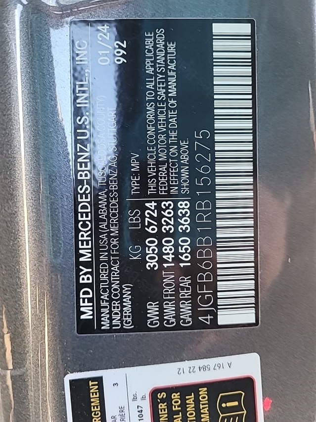 | VIN | 4JGFB6BB1RB156275 |
