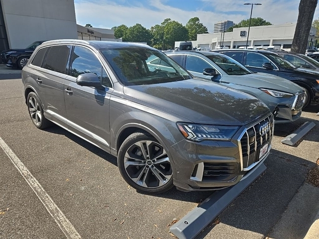 This 2021 Audi Q7 55 Prestige quattro in Gray Metallic comes with the following features: 3.0L TFSI V6 DOHC 8-Speed Automatic with Tiptronic quattro ***Manager Special - PRICE NOT A MISPRINT - THIS MONTH ONLY!!*, *Blind Spot Technology - Never Worry When Changing Lanes Again*, *Bluetooth Hands-Free Calling*, *Heated Front Leather Seats*, *Keyless Entry*, *Panoramic Moonroof*, *Push Button Start*, and *We Deliver Anywhere* Contour/Ambient LED Interior Lighting Package, Executive Package, Prestige Package (Comfort Adaptive Air Suspension, Dual-Pane Acoustic Side Windows, Head-Up Display, Intersection Assist, Matrix-Design LED Headlights, Power Soft-Closing Doors, and Traffic Sign Recognition), Towing Package (Tow Hitch Receiver), 10 Speakers, 3rd row seats: bench, Air Conditioning, Alloy wheels, AM/FM radio: SiriusXM, Audi smartphone interface (Apple CarPlay/Android Auto), Auto High-beam Headlights, Auto-dimming Rear-View mirror, Automatic temperature control, Compass, Delay-off headlights, Driver vanity mirror, Dual front impact airbags, Dual front side impact airbags, Emergency communication system: Audi connect CARE, PRIME & PLUS, Exterior Parking Camera Rear, Front dual zone A/C, Front fog lights, Front reading lights, Fully automatic headlights, Garage door transmitter: HomeLink, Heated door mirrors, Heated Front Bucket Seats, Heated front seats, Illuminated entry, Low tire pressure warning, Memory seat, Navigation system: Audi MMI Navigation plus with Touch Response, Occupant sensing airbag, Outside temperature display, Overhead airbag, Overhead console, Panic alarm, Passenger vanity mirror, Power driver seat, Power Liftgate, Power moonroof, Power passenger seat, Radio: Audi Sound System, Rain sensing wipers, Rear air conditioning, Rear fog lights, Rear window wiper, Remote keyless entry, Security system, Speed control, Speed-sensing steering, Steering wheel memory, Steering wheel mounted audio controls, Tachometer, Telescoping steering wheel, Tilt steering wheel, Trip computer, Turn signal indicator mirrors, and Variably intermittent w