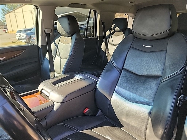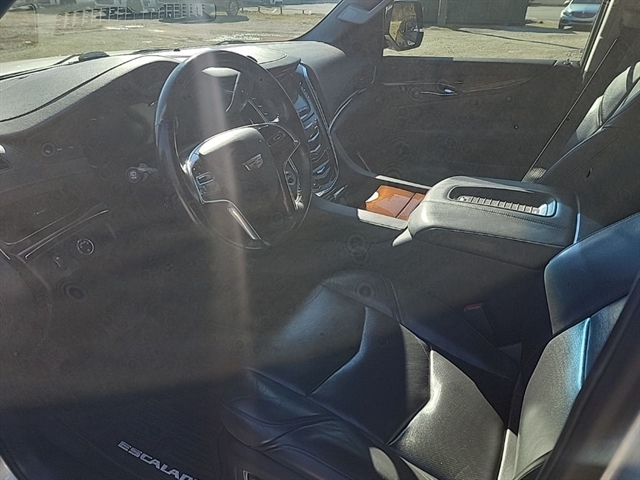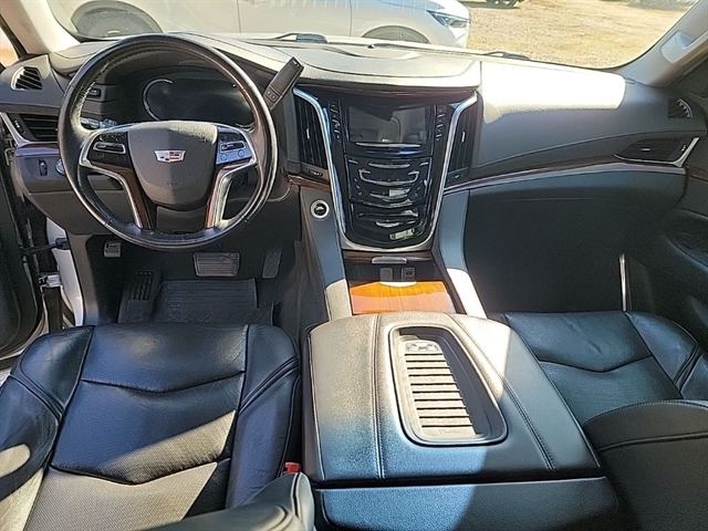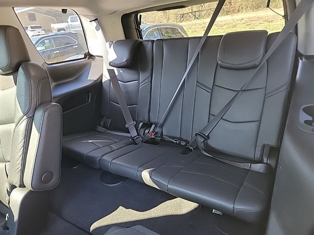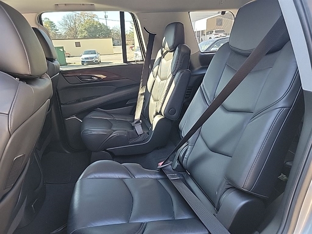 This 2020 Cadillac Escalade Luxury in Radiant Silver Metallic comes with the following features: 6.2L V8 10-Speed Automatic with Overdrive RWD Black Leather Driver Awareness Package (Automatic Emergency Braking, Forward Collision Alert, IntelliBeam Automatic High Beam On/Off, Lane Change Alert w/Side Blind Zone Alert, Lane Keep Assist w/Lane Departure Warning, Rear Cross Traffic Alert, and Safety Alert Seat), Preferred Equipment Group 1SB (Power Configurable Second Row Bucket Seats, Power Tilt-Sliding Sunroof w/Express-Open/Close, Rear Camera Mirror, Rear Camera Mirror Washer, and Reconfigurable 4-Color Head-Up Display), Theft-Deterrent Package (Inclination Sensor, Theft-Deterrent Alarm System, and Vehicle Interior Movement Sensor), Black Leather, 12-Way Power Front Passenger Seat Adjuster, 16 Speakers, 2-Presets Memory For Driver Seat Adjuster, 3.23 Axle Ratio, 3rd row seats: split-bench, 4-Wheel Disc Brakes, ABS brakes, Adaptive suspension, Adjustable pedals, Air Conditioning, Alloy wheels, AM/FM radio: SiriusXM, Apple CarPlay/Android Auto, Auto High-beam Headlights, Auto tilt-away steering wheel, Auto-dimming door mirrors, Auto-dimming Rear-View mirror, Auto-leveling suspension, Automatic temperature control, Bodyside moldings, Bose Centerpoint 16 Speaker Surround Sound System, Brake assist, Bumpers: body-color, CD player, Compass, Delay-off headlights, Driver door bin, Driver vanity mirror, Dual front impact airbags, Dual front side impact airbags, DVD-Audio, Electronic Stability Control, Emergency communication system: OnStar and Cadillac connected services capable, Exterior Parking Camera Rear, Front anti-roll bar, Front Bucket Seats, Front Center Armrest w/Storage, Front dual zone A/C, Front reading lights, Front wheel independent suspension, Fully automatic headlights, Garage door transmitter, HD Radio, Heads-Up Display, Heated & Cooled Driver & Front Passenger Seats, Heated door mirrors, Heated front seats, Heated rear seats, Heated steering wheel, Illuminated entry, Leather Seating Surfaces, Leather Shift Knob, Leather steering wheel, Low tire pressure warning, Magnetic Ride Control Suspension, Memory seat, Navigation System, Occupant sensing airbag, Outside temperature display, Overhead airbag, Overhead console, Panic alarm, Passenger door bin, Passenger vanity mirror, Pedal memory, Power door mirrors, Power driver seat, Power Liftgate, Power moonroof, Power passenger seat, Power steering, Power windows, Radio data system, Radio: AM/FM Cadillac User Experience w/Nav, Rain sensing wipers, Rear air conditioning, Rear anti-roll bar, Rear audio controls, Rear reading lights, Rear window defroster, Rear window wiper, Remote keyless entry, Security system, Single Slot CD/MP3 Player, SiriusXM NavTraffic, SiriusXM Radio, Speed control, Split folding rear seat, Spoiler, Steering wheel memory, Steering wheel mounted audio controls, Tachometer, Telescoping steering wheel, Tilt steering wheel, Traction control, Trip computer, Turn signal indicator mirrors, Variably intermittent wipers, Ventilated front seats, and Wheels: 22`` x 9`` 7-Spoke Alloy w/Chrome Inserts.