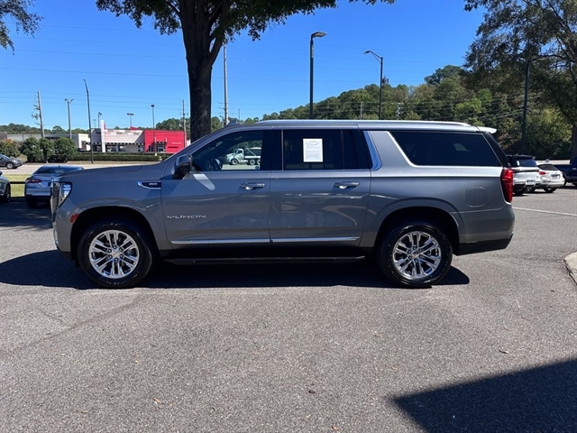 This 2022 GMC Yukon XL SLT in Satin Steel Metallic comes with the following features: EcoTec3 5.3L V8 10-Speed Automatic with Overdrive RWD *3rd Row Seating*, *Back Up Warning Sensors*, *Blind Spot Technology - Never Worry When Changing Lanes Again*, *Bluetooth Hands-Free Calling*, *Heated Front Leather Seats*, *Moonroof*, *Push Button Start*, and *Rear View Back-Up Camera* Preferred Equipment Group 4SA (2 Presets For Power Driver Seat, Automatic Stop/Start, Bose 9-Speaker Stereo Audio System Feature, Bright Chrome Bodyside Moldings, Bright Front & Rear Door Sill Plates, Chrome