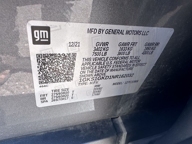 *3rd Row Seating*, *Back Up Warning Sensors*, *Blind Spot Technology - Never Worry When Changing Lanes Again*, *Bluetooth Hands-Free Calling*, *Heated Front Leather Seats*, *Moonroof*, *Push Button Start*, *Rear View Back-Up Camera*, 2 Presets For Outside Rearview Mirrors, 2 Presets For Power Driver Seat, 3.23 Rear Axle Ratio, 3rd Row 60/40 Power-Folding Split-Bench Seat, 3rd row seats: split-bench, 4-Wheel Disc Brakes, 9 Speakers, ABS brakes, Air Conditioning, Alloy wheels, AM/FM radio: SiriusXM with 360L, AM/FM Stereo, Apple CarPlay/Android Auto, Auto High-beam Headlights, Auto-dimming Rear-View mirror, Automatic Emergency Braking, Automatic Stop/Start, Automatic temperature control, Bodyside moldings, Bose 9-Speaker Stereo Audio System Feature, Brake assist, Bright Chrome Bodyside Moldings, Bright Front & Rear Door Sill Plates, Bumpers: body-color, Chrome Door Handles w/Body-Color Strip, Compass, Delay-off headlights, Driver door bin, Driver vanity mirror, Dual front impact airbags, Dual front side impact airbags, Dual-Pane Panoramic Power Sunroof, Electronic Stability Control, Emergency communication system: OnStar and GMC Connected Services capable, Following Distance Indicator, Forward Collision Alert, Four wheel independent suspension, Front & Rear Park Assist, Front anti-roll bar, Front Bucket Seats, Front Center Armrest, Front dual zone A/C, Front fog lights, Front Pedestrian Braking, Front reading lights, Fully automatic headlights, Garage door transmitter, Hands-Free Power Programmable Rear Liftgate, HD Surround Vision, Heated & Ventilated Driver & Front Passenger Seats, Heated 2nd Row Outboard Position Seats, Heated door mirrors, Heated Driver & Front Passenger Seats, Heated front seats, Heated Steering Wheel, Illuminated entry, Inside Rear-View Auto-Dimming Mirror, IntelliBeam Automatic High Beam On/Off, Lane Change Alert w/Side Blind Zone Alert, Lane Keep Assist w/Lane Departure Warning, Leather steering wheel, Low tire pressure warning, Memory seat, Navigation System, Not Equipped w/4-Way Driver & Fr Pass Pwr Lumbar, Not Equipped w/Heated Steering Wheel (DISC), Not Equipped w/Steering Column Lock, Occupant sensing airbag, Outside Heated Power-Adjustable Mirrors, Outside temperature display, Overhead airbag, Overhead console, Panic alarm, Passenger door bin, Passenger vanity mirror, Perforated Leather-Appointed Seating, Power door mirrors, Power driver seat, Power Liftgate, Power passenger seat, Power Release 2nd Row 60/40 Split-Folding Bench Seat, Power Release 2nd Row Bucket Seats, Power steering, Power Tilt & Telescopic Steering Column, Power windows, Preferred Equipment Group 4SA, Premium Smooth Ride Suspension, Rain sensing wipers, Rear air conditioning, Rear anti-roll bar, Rear Cross Traffic Alert, Rear Pedestrian Alert, Rear reading lights, Rear seat center armrest, Rear window defroster, Rear window wiper, Remote keyless entry, Roof rack: rails only, Safety Alert Seat, Security system, SiriusXM w/360L, SLT Luxury Package, SLT Premium Package, Speed control, Speed-sensing steering, Split folding rear seat, Spoiler, Start/Stop System Disable Button, Steering wheel mounted audio controls, Tachometer, Telescoping steering wheel, Tilt steering wheel, Traction control, Trip computer, Universal Home Remote, Variably intermittent wipers, Ventilated front seats, Voltmeter, Wheels: 20`` x 9`` 6-Spoke Polished Aluminum, Wireless Charging.