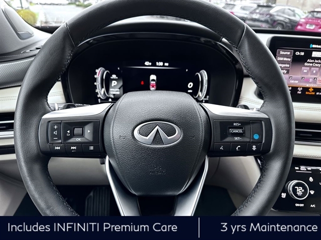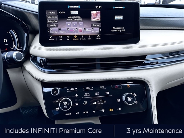 *3rd Row Seating*, ***Manager Special - PRICE NOT A MISPRINT - THIS MONTH ONLY!!*, *Back Up Warning Sensors*, *Blind Spot Technology - Never Worry When Changing Lanes Again*, *Bluetooth Hands-Free Calling*, *Factory Certified Pre-owned Vehicle!*, *Heated And Cooled Front Leather Seats*, *Heated Front Leather Seats*, *Keyless Entry*, *Moonroof*, *Panoramic Moonroof*, *Power Folding Mirrors*, *Power Windows, Locks and Mirrors*, *Push Button Start*, 17 Speakers, 3rd row seats: bench, 4-Wheel Disc Brakes, ABS brakes, Air Conditioning, Alloy wheels, AM/FM radio: SiriusXM, Anti-whiplash front head restraints, Apple CarPlay/Android Auto, Auto High-beam Headlights, Auto tilt-away steering wheel, Auto-dimming door mirrors, Auto-dimming Rear-View mirror, Automatic temperature control, Bose Performance Series 17-Speaker Sound System, Brake assist, Bumpers: body-color, Climate Controlled Front Bucket Seats, Delay-off headlights, Driver door bin, Driver vanity mirror, Dual front impact airbags, Dual front side impact airbags, Electronic Stability Control, Emergency communication system: INFINITI InTouch, Exterior Parking Camera Rear, Four wheel independent suspension, Front anti-roll bar, Front Bucket Seats, Front Center Armrest, Front dual zone A/C, Front reading lights, Fully automatic headlights, Garage door transmitter: HomeLink, Heated door mirrors, Heated front seats, Heated rear seats, Heated steering wheel, Illuminated entry, Knee airbag, Leather Shift Knob, Leather steering wheel, Leather-Appointed Seating Surfaces, Low tire pressure warning, Memory seat, Navigation system: INFINITI InTouch Navigation, Occupant sensing airbag, Outside temperature display, Overhead airbag, Overhead console, Panic alarm, Passenger door bin, Passenger vanity mirror, Power door mirrors, Power driver seat, Power Liftgate, Power moonroof, Power passenger seat, Power steering, Power windows, Radio data system, Radio: Bose Performance Series, Rain sensing wipers, Rear air conditioning, Rear anti-roll bar, Rear reading lights, Rear seat center armrest, Rear side impact airbag, Rear window defroster, Rear window wiper, Reclining 3rd row seat, Remote keyless entry, Security system, Speed control, Speed-sensing steering, Speed-Sensitive Wipers, Split folding rear seat, Spoiler, Steering wheel memory, Steering wheel mounted audio controls, Tachometer, Telescoping steering wheel, Tilt steering wheel, Traction control, Trip computer, Turn signal indicator mirrors, Variably intermittent wipers, Ventilated front seats, Wheels: 20`` x 8J Sporty Machined Aluminum Alloy.