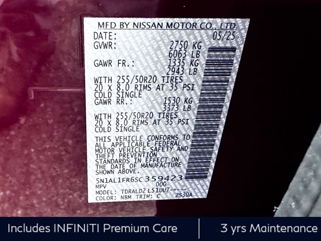 INFINITI Certified Pre-Owned means you not only get the reassurance of a 6yr/75,000 mile warranty, but also a 167-point inspection/reconditioning, complimentary first year basic maintenance, 24/7 roadside assistance, trip-interruption services, free 3-month trial subscription to SiriusXM Satellite Radio, complimentary service courtesy vehicle, and a complete CARFAX vehicle history report.