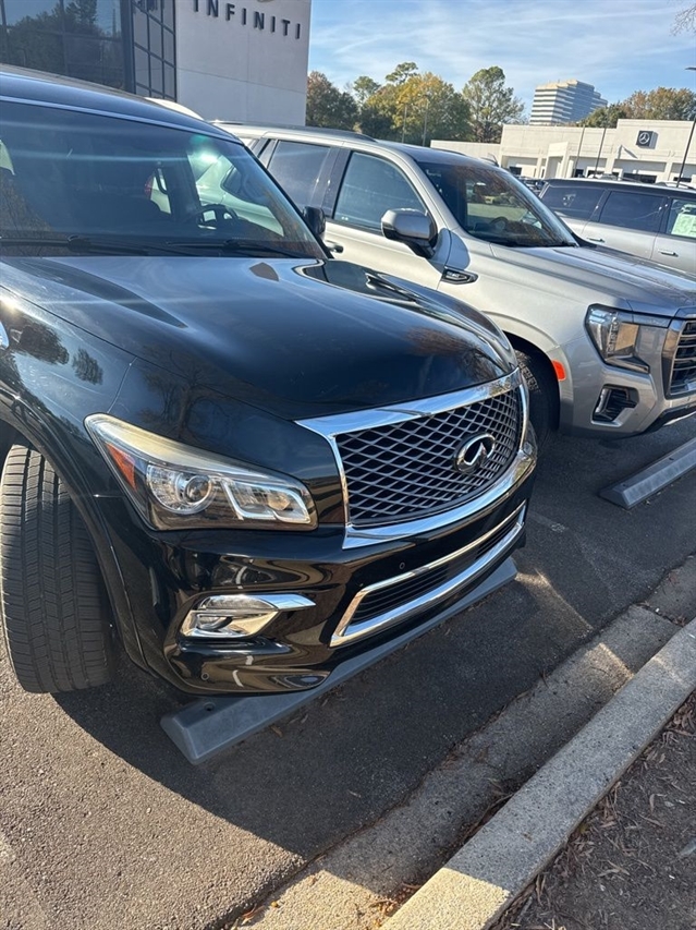 This 2016 INFINITI QX80 in Black Obsidian comes with the following features: 5.6L V8 7-Speed Automatic 4WD *3rd Row Seating*, ***Manager Special - PRICE NOT A MISPRINT - THIS MONTH ONLY!!*, *Bluetooth Hands-Free Calling*, *Heated Front Leather Seats*, *Moonroof*, *Power Folding Mirrors*, *Push Button Start*, *Remote Start*, and *We Deliver Anywhere* Anti-whiplash front head restraints, Auto High-beam Headlights, Auto-dimming door mirrors, Auto-dimming Rear-View mirror, Brake assist, Electronic Stability Control, Emergency communication system: INFINITI Connection, Garage door transmitter: HomeLink, Heated door mirrors, Heated Front Bucket Seats, Heated steering wheel, Illuminated entry, Leather-Appointed Seats w/Mocha Burl Trim, Memory seat, Navigation System, Power door mirrors, Power Liftgate, Power moonroof, Power passenger seat, Rain sensing wipers, Remote keyless entry, Steering wheel memory, Telescoping steering wheel, and Wheels: 20`` Split 6-Spoke Aluminum-Alloy Anti-whiplash front head restraints, Auto High-beam Headlights, Auto-dimming door mirrors, Auto-dimming Rear-View mirror, Brake assist, Electronic Stability Control, Emergency communication system: INFINITI Connection, Garage door transmitter: HomeLink, Heated door mirrors, Heated Front Bucket Seats, Heated steering wheel, Illuminated entry, Leather-Appointed Seats w/Mocha Burl Trim, Memory seat, Navigation System, Power door mirrors, Power Liftgate, Power moonroof, Power passenger seat, Rain sensing wipers, Remote keyless entry, Steering wheel memory, Telescoping steering wheel, Wheels: 20`` Split 6-Spoke Aluminum-Alloy, 13 Speakers, 2.94 Axle Ratio, 3rd row seats: split-bench, 4-Wheel Disc Brakes, ABS brakes, Activation Disclaimer, Air Conditioning, Alloy wheels, AM/FM radio: SiriusXM, Auto tilt-away steering wheel, Auto-leveling suspension, Automatic temperature control, Bose Premium Sound System, Bumpers: body-color, Carpeted Cargo Mat/Cargo Net & First Aid Kit, CD player, Delay-off headlights, Driver door bin, Driver vanity mirror, Dual front impact airbags, Dual front side impact airbags, Four wheel independent suspension, Front anti-roll bar, Front Bucket Seats, Front Center Armrest, Front dual zone A/C, Front fog lights, Front reading lights, Fully automatic headlights, Genuine wood console insert, Genuine wood dashboard insert, Genuine wood door panel insert, Heated front seats, Illuminated Kick Plates, Leather Shift Knob, Leather steering wheel, Literature Kit, Low tire pressure warning, Occupant sensing airbag, Outside temperature display, Overhead airbag, Overhead console, Panic alarm, Passenger door bin, Passenger vanity mirror, Power driver seat, Power steering, Power windows, Radio data system, Rear air conditioning, Rear anti-roll bar, Rear audio controls, Rear reading lights, Rear seat center armrest, Rear window defroster, Rear window wiper, Reclining 3rd row seat, Roof rack: rails only, Security system, Speed control, Speed-sensing steering, Split folding rear seat, Spoiler, Steering wheel mounted audio controls, Tachometer, Tilt steering wheel, Traction control, Trip computer, Turn s