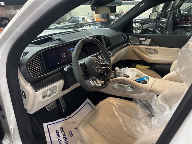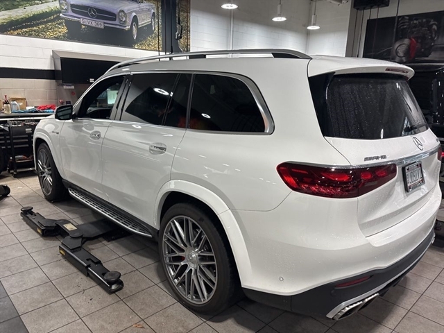 This 2024 Mercedes-Benz GLS GLS 63 AMG® 4MATIC® in Polar White comes with the following features: 4.0L V8 9-Speed Automatic 4MATIC® 4.0L V8 4.0L V8, 13 Speakers, 3rd row seats: split-bench, 4-Wheel Disc Brakes, 7-Seat Configuration, ABS brakes, Active Multi-Contour Power Front Seats, Adaptive suspension, Air Conditioning, Alloy wheels, AM/FM radio: SiriusXM, Apple CarPlay®/Android Auto®, Auto High-beam Headlights, Auto tilt-away steering wheel, Auto-dimming door mirrors, Auto-dimming Rear-View mirror, Auto-leveling suspension, Automatic temperature control, Axle Ratio: TBD, Brake assist, Bumpers: body-color, Burmester® Surround Sound System, Child-Seat-Sensing Airbag, Compass, Delay-off headlights, Door auto-latch, Driver door bin, Driver vanity mirror, Dual front impact airbags, Dual front side impact airbags, Electronic Stability Control, Emergency communication system: eCall Emergency System, Exclusive Nappa Leather Upholstery, Exterior Parking Camera Rear, Four wheel independent suspension, Front anti-roll bar, Front Bucket Seats, Front Center Armrest w/Storage, Front dual zone A/C, Front reading lights, Fully automatic headlights, Garage door transmitter: HomeLink, Genuine wood console insert, Genuine wood dashboard insert, Genuine wood door panel insert, Head restraints memory, Heads-Up Display, Heated door mirrors, Heated front seats, Heated rear seats, Heated steering wheel, Illuminated entry, Illuminated running boards, Knee airbag, Low tire pressure warning, Memory seat, Navigation System, Occupant sensing airbag, Outside temperature display, Overhead airbag, Overhead console, Panic alarm, Passenger door bin, Passenger vanity mirror, Power adjustable front head restraints, Power door mirrors, Power driver seat, Power Liftgate, Power moonroof: Panorama, Power passenger seat, Power steering, Power windows, Premium audio system: MBUX, Radio: MBUX Multimedia System, Rain sensing wipers, Rear air conditioning, Rear anti-roll bar, Rear dual zone A/C, Rear fog lights, Rear reading lights, Rear seat center armrest, Rear window defroster, Rear window wiper, Remote keyless entry, Security system, Speed control, Speed-sensing steering, Speed-Sensitive Wipers, Split folding rear seat, Spoiler, Sport steering wheel, Steering wheel memory, Steering wheel mounted audio controls, Tachometer, Telescoping steering wheel, Tilt steering wheel, Traction control, Trip computer, Turn signal indicator mirrors, Variably intermittent wipers, Ventilated front seats, Weather band radio, and Wheels: 21`` AMG® 10-Spoke.