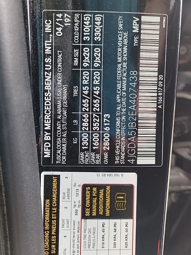 | VIN | 4JGDA5JB2EA407438 |