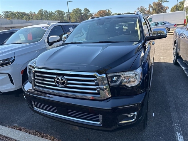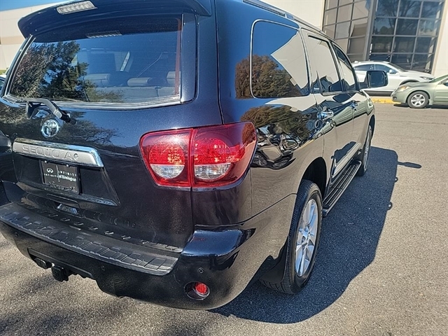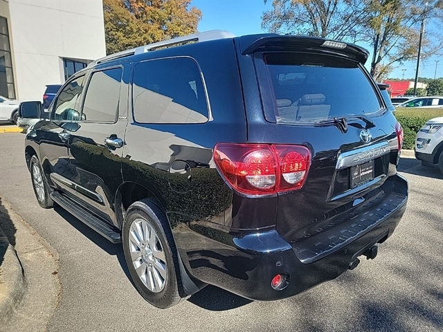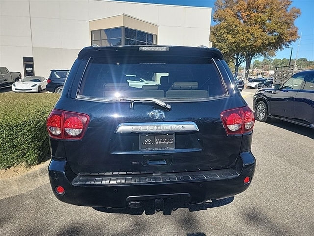 This 2018 Toyota Sequoia Platinum in Midnight Black Metallic comes with the following features: i-Force 5.7L V8 DOHC VVT-i 6-Speed Automatic Electronic 4WD *3rd Row Seating*, *Bluetooth Hands-Free Calling*, *Keyless Entry*, and *We Deliver Anywhere* 6-Speed Automatic Electronic, 4WD, 14 Speakers, 3rd row seats: split-bench, A/V remote, Air Conditioning, Alloy wheels, AM/FM radio: SiriusXM, Auto High-beam Headlights, Auto tilt-away steering wheel, Auto-dimming door mirrors, Auto-dimming Rear-View mirror, Auto-leveling suspension, Automatic temperature control, CD player, Compass, Delay-off headlights, Driver vanity mirror, Dual front impact airbags, Dual front side impact airbags, Entertainment system, Front dual zone A/C, Front fog lights, Fully automatic headlights, Garage door transmitter: HomeLink, Headphones, Heated door mirrors, Heated front seats, Heated rear seats, Illuminated entry, Knee airbag, Low tire pressure warning, Memory seat, Occupant sensing airbag, Outside temperature display, Overhead airbag, Overhead console, Panic alarm, Passenger vanity mirror, Perforated Leather Seat Trim, Power door mirrors, Power driver seat, Power moonroof, Rear air conditioning, Rear window defroster, Reclining 3rd row seat, Security system, Speed control, Steering wheel memory, Steering wheel mounted audio controls, Tachometer, Telescoping steering wheel, Tilt steering wheel, Trip computer, Turn signal indicator mirrors, Variably intermittent wipers, Ventilated front seats, and Voltmeter 6-Speed Automatic Electronic, 4WD, 14 Speakers, 3rd row seats: split-bench, A/V remote, Air Conditioning, Alloy wheels, AM/FM radio: SiriusXM, Auto High-beam Headlights, Auto tilt-away steering wheel, Auto-dimming door mirrors, Auto-dimming Rear-View mirror, Auto-leveling suspension, Automatic temperature control, CD player, Compass, Delay-off headlights, Driver vanity mirror, Dual front impact airbags, Dual front side impact airbags, Entertainment system, Front dual zone A/C, Front fog lights, Fully automatic headlights, Garage door transmitter: HomeLink, Headphones, Heated door mirrors, Heated front seats, Heated rear seats, Illuminated entry, Knee airbag, Low tire pressure warning, Memory seat, Occupant sensing airbag, Outside temperature display, Overhead airbag, Overhead console, Panic alarm, Passenger vanity mirror, Perforated Leather Seat Trim, Power door mirrors, Power driver seat, Power moonroof, Rear air conditioning, Rear window defroster, Reclining 3rd row seat, Security system, Speed control, Steering wheel memory, Steering wheel mounted audio controls, Tachometer, Telescoping steering wheel, Tilt steering wheel